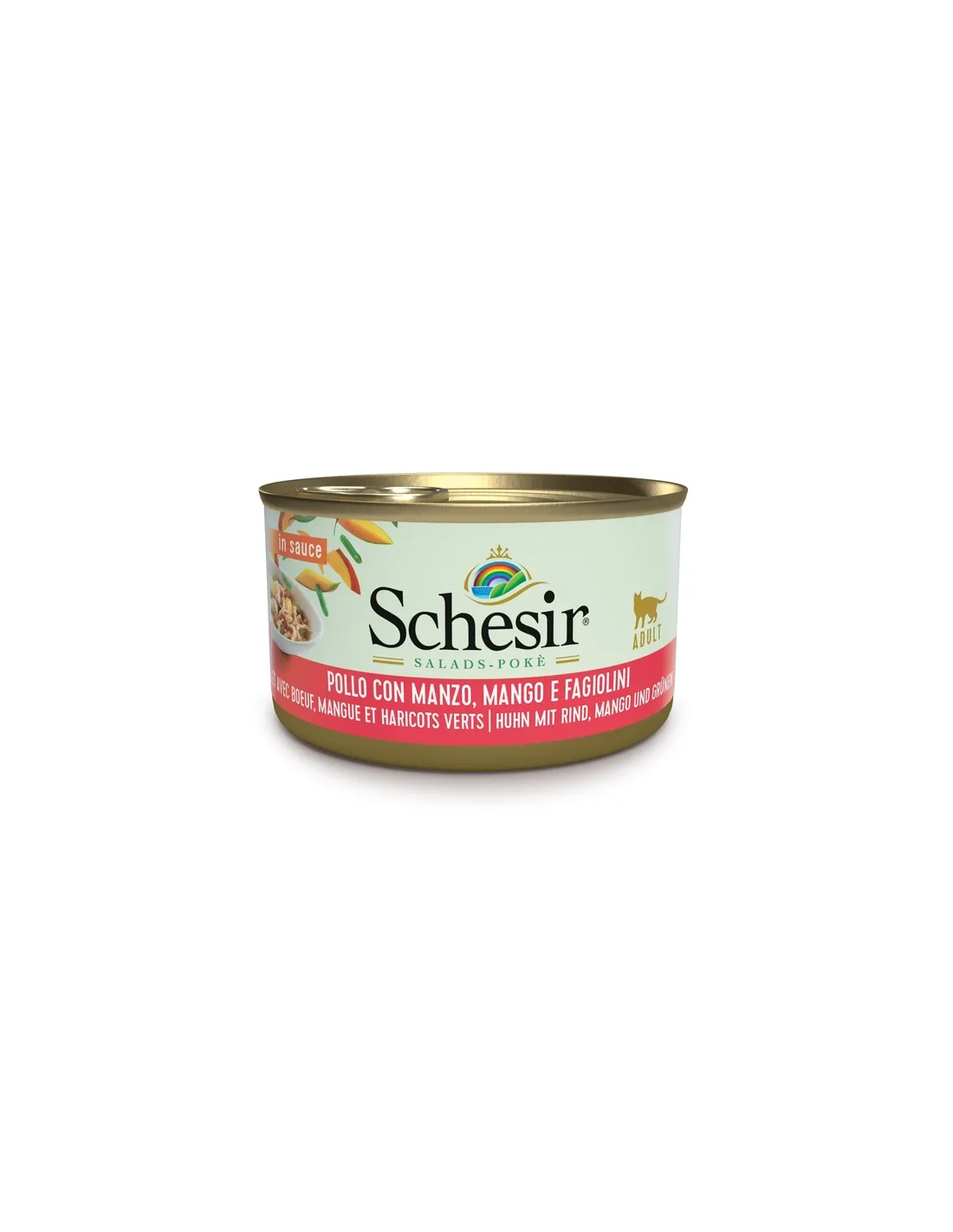La nourriture humide Schesir au poulet et au bœuf avec du riz convient aux chats adultes de toutes races. Il convient particulièrement aux chats au palais raffiné qui préfèrent les saveurs naturelles et authentiques. Ce produit peut être utilisé comme aliment principal ou comme complément à l'alimentation sèche, apportant de la variété et stimulant l'appétit de votre chat.