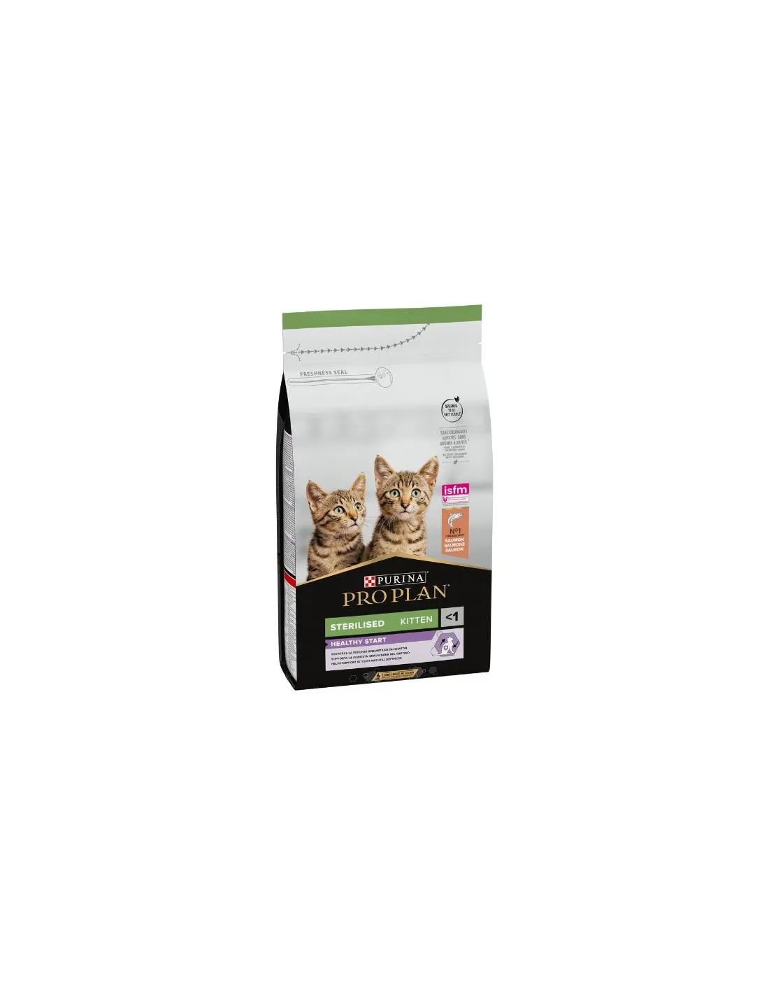 Le saumon stérilisé Purina Pro Plan Kitten convient aux chatons stérilisés jusqu'à l'âge d'un an. La stérilisation peut modifier le métabolisme d'un chaton, il est donc essentiel de lui fournir une nourriture contenant un équilibre adéquat de nutriments pour favoriser un développement sain pendant la première année de vie, qui est une période critique pour sa croissance et son développement.