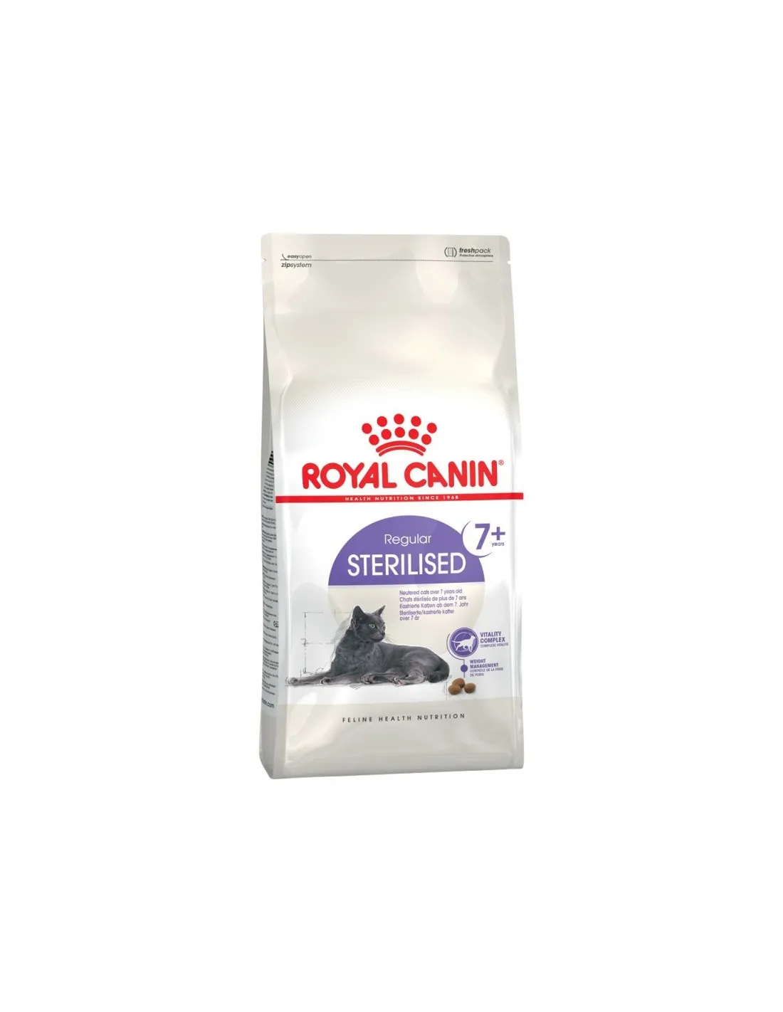 Royal Canin Regular STERILIZED 7+ est un aliment complet spécialement formulé pour les chats stérilisés de plus de 7 ans. Ce produit est conçu pour soutenir la santé rénale et urinaire, gardant votre chat en forme et actif.