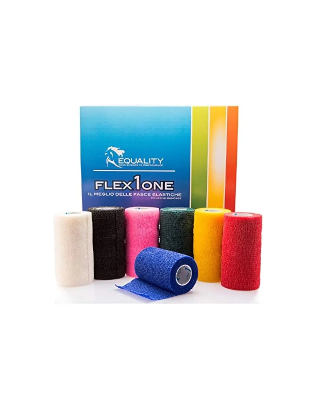 Flex-1-One est une bande élastique cohésive noire, conçue spécifiquement pour les équidés. Cette enveloppe est idéale pour une variété d'applications, notamment le maintien des bandages, les contentions postopératoires, le pansement et la fixation de la queue. Sa longueur de 4,5 mètres et sa largeur de 10 cm le rendent adapté à toutes les disciplines équestres. La bande a été conçue pour être extrêmement facile à manipuler : elle se déchire facilement avec les mains, éliminant le besoin de ciseaux, et n'adhère pas au pelage de l'animal, évitant ainsi inconfort et irritation.