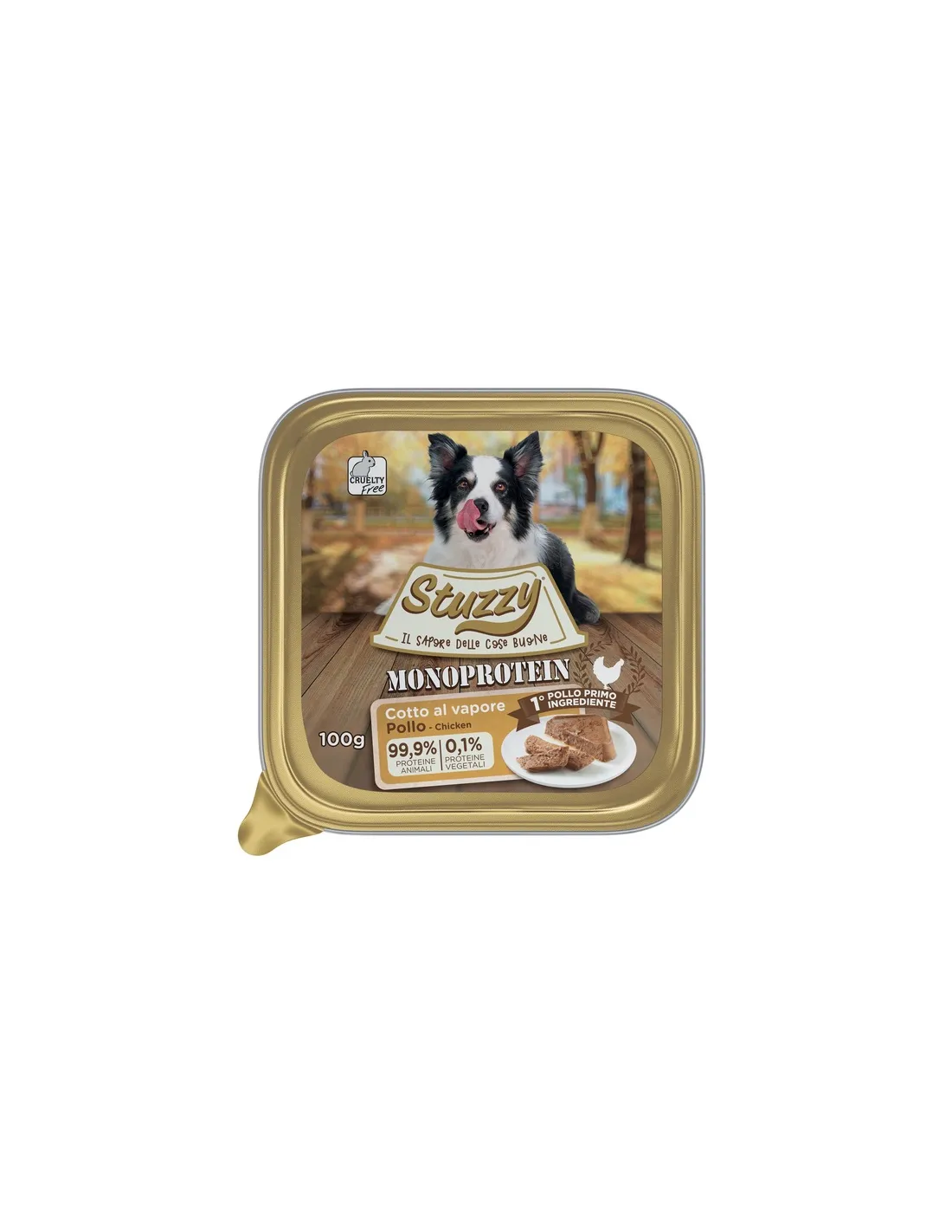 Stuzzy Dog - Monoprotéine - Adulte - 100 g x 6 barquettes est une nourriture humide pour chien adulte qui garantit une alimentation monoprotéique de haute qualité. Chaque barquette contient un pâté riche et savoureux, avec une source unique de protéines animales, idéal pour les chiens présentant des sensibilités alimentaires ou des régimes spécifiques. La viande, ingrédient principal, est cuite à la vapeur pour préserver sa saveur et ses propriétés nutritionnelles, offrant à votre chien un repas sain et délicieux.