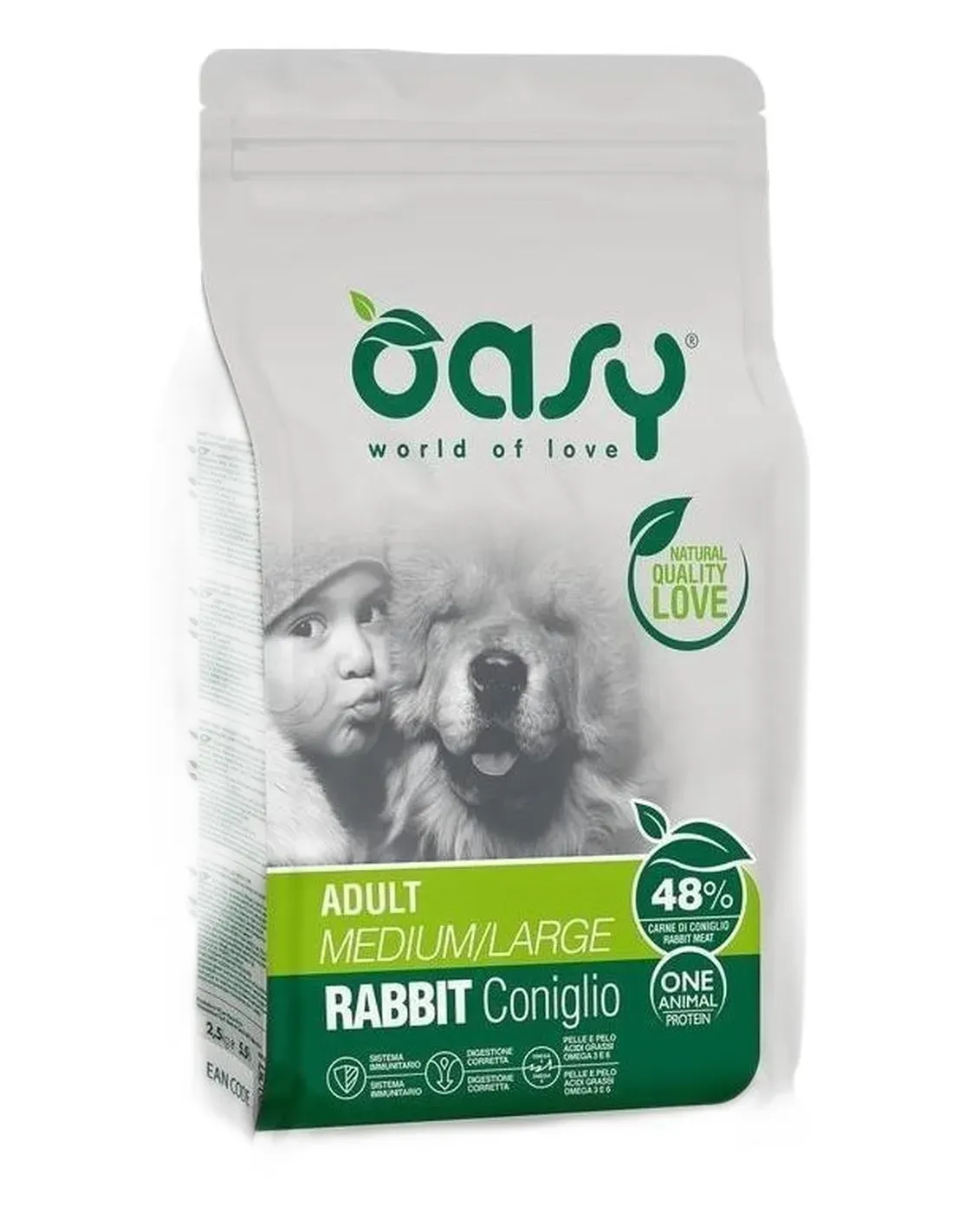 Oasy chien adulte une protéine lapin moyen grand 12 kg