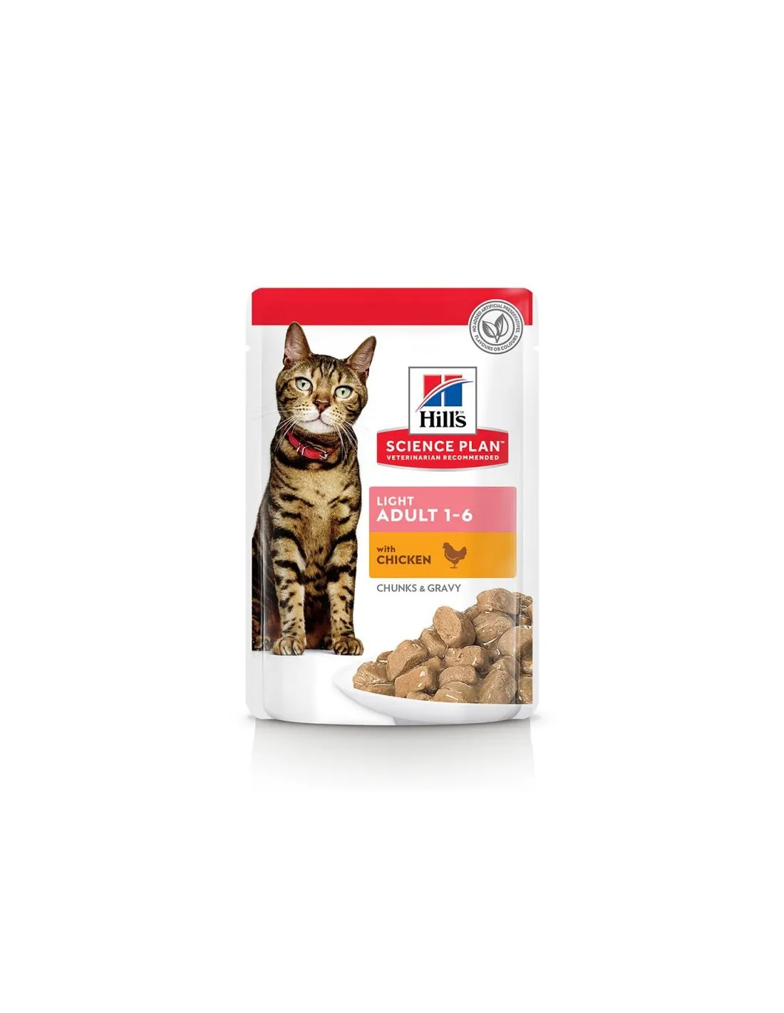 Hill's Cat Science Plan Adult Light Chicken Envelope 85 Gr est un produit sans danger pour votre chat lorsqu'il est administré selon les instructions. Il est toujours conseillé de consulter votre vétérinaire avant de commencer un nouveau régime.