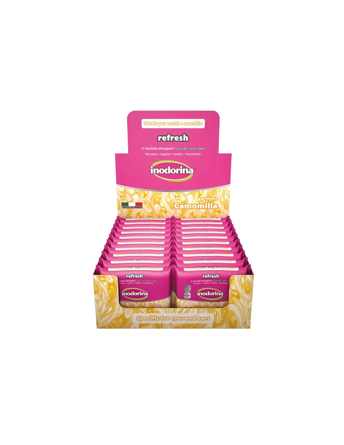 Le choix de ne pas inclure ces composants démontre l'attention d'Inodorina SRL à la santé et au bien-être des animaux, en veillant à ce que les lingettes soient aussi sûres et délicates que possible. Leur formule a également été enrichie d'un agréable parfum de camomille, qui en plus de neutraliser les mauvaises odeurs, laisse une sensation de fraîcheur et de propreté.