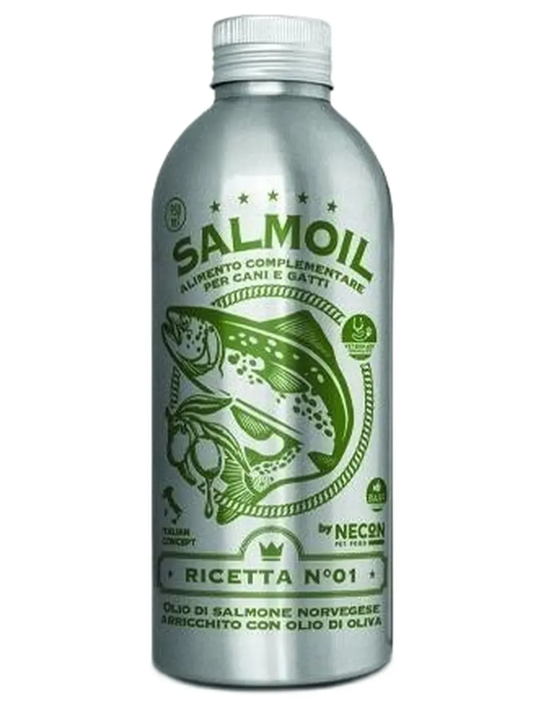 Salmoil Recipe 1 est le produit idéal pour intégrer les besoins quotidiens en Oméga 3 dans l'alimentation des chiens et des chats, il peut être utilisé avec une alimentation sèche ou humide et est indiqué comme composant du régime Barf.