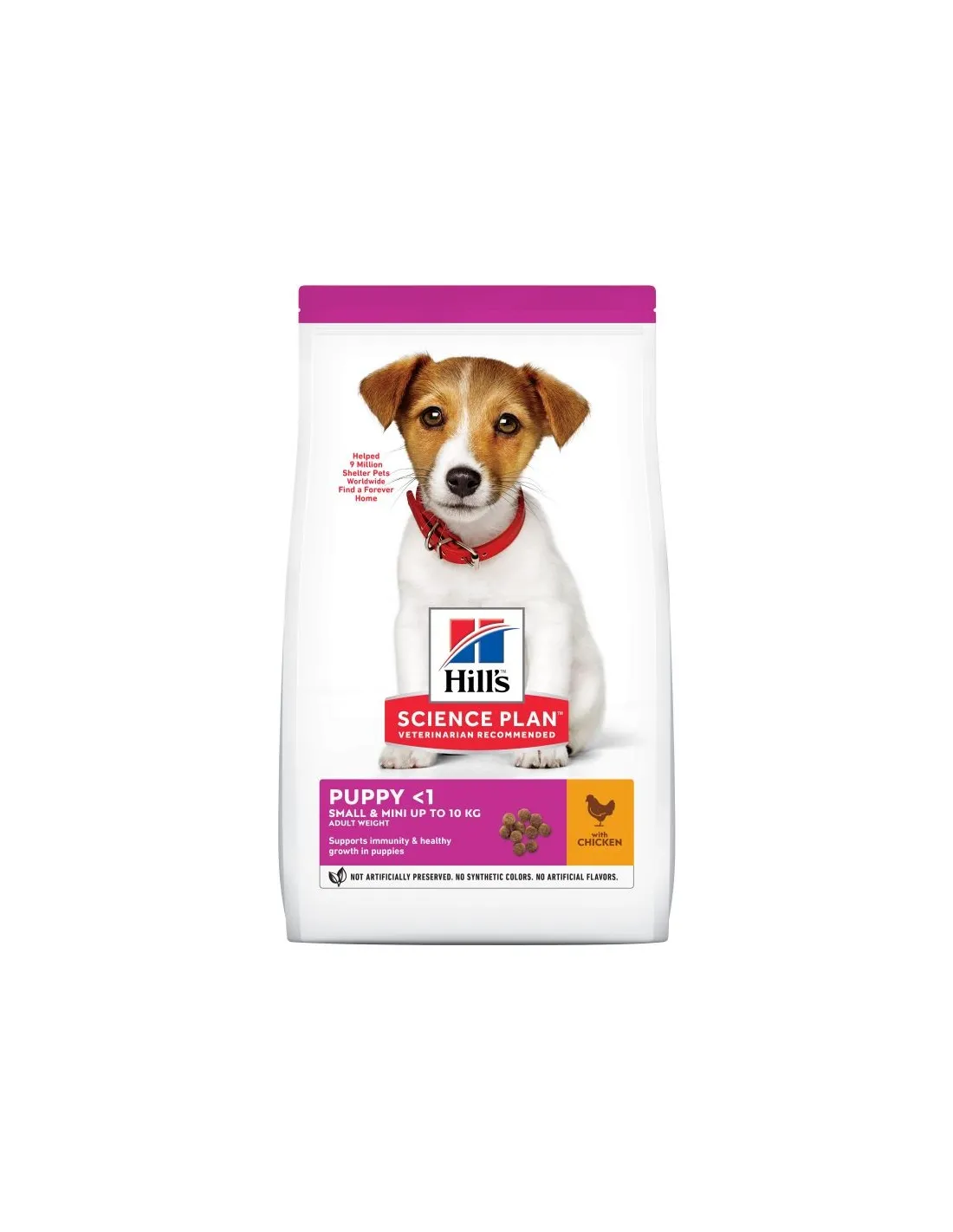 Hill's Science Plan Small & Mini Puppy est recommandé pour les chiots jusqu'à l'âge d'un an, spécialement formulé pour ceux qui s'attendent à atteindre un poids adulte de 25 kg ou moins. Cet aliment favorise le développement sain des os et des dents grâce à des niveaux de minéraux optimaux. Il convient également aux chiots gestants ou allaitants, fournissant tous les nutriments essentiels pour soutenir leur santé et celle de leurs chiots.
