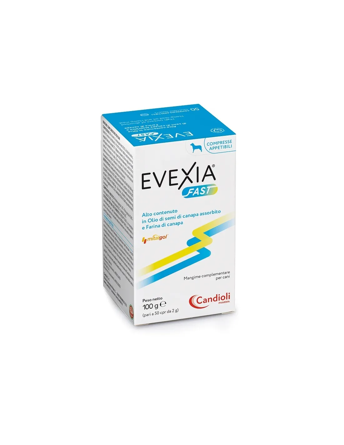 La durée et l'intensité du traitement par Evexia Fast Candioli varient en fonction de l'état clinique de l'animal et des indications du vétérinaire. En cas d'altérations transitoires de la fonction digestive, une utilisation de quelques jours ou une semaine est généralement suffisante, tandis que, dans des situations chroniques ou en soutien continu, l'administration peut également être poursuivie pendant plusieurs cycles de semaines, en alternant périodes de prise et suspension programmée. En cas de troubles légers ou passager, un comprimé par jour (ou la dose prescrite en fonction du poids) peut suffire pour favoriser la normalisation des fonctions intestinales. En cas d'épisodes récurrents ou d'animaux particulièrement prédisposés, le vétérinaire pourra recommander une supplémentation cyclique ou continue, notamment en correspondance avec les changements saisonniers, les régimes alimentaires, les déménagements ou d'autres situations à risque accru. Le complément peut être associé à d'autres traitements vétérinaires dans le cadre d'un plan thérapeutique global, toujours sous la supervision d'un professionnel.