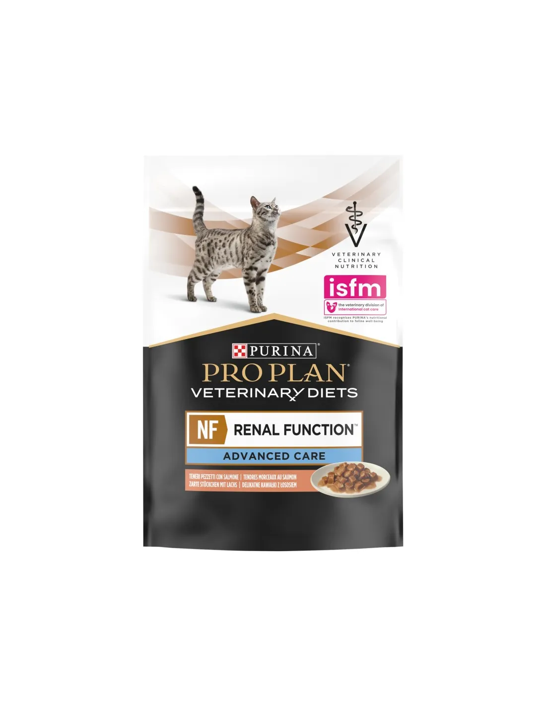 Purina Pro Plan Veterinary Diets Feline NF Flocons pour Fonction Rénale en Sauce au Saumon 85 g est un aliment humide pour chats, spécialement conçu pour soutenir la fonction rénale des félins qui nécessitent un régime spécial pour la santé rénale.
