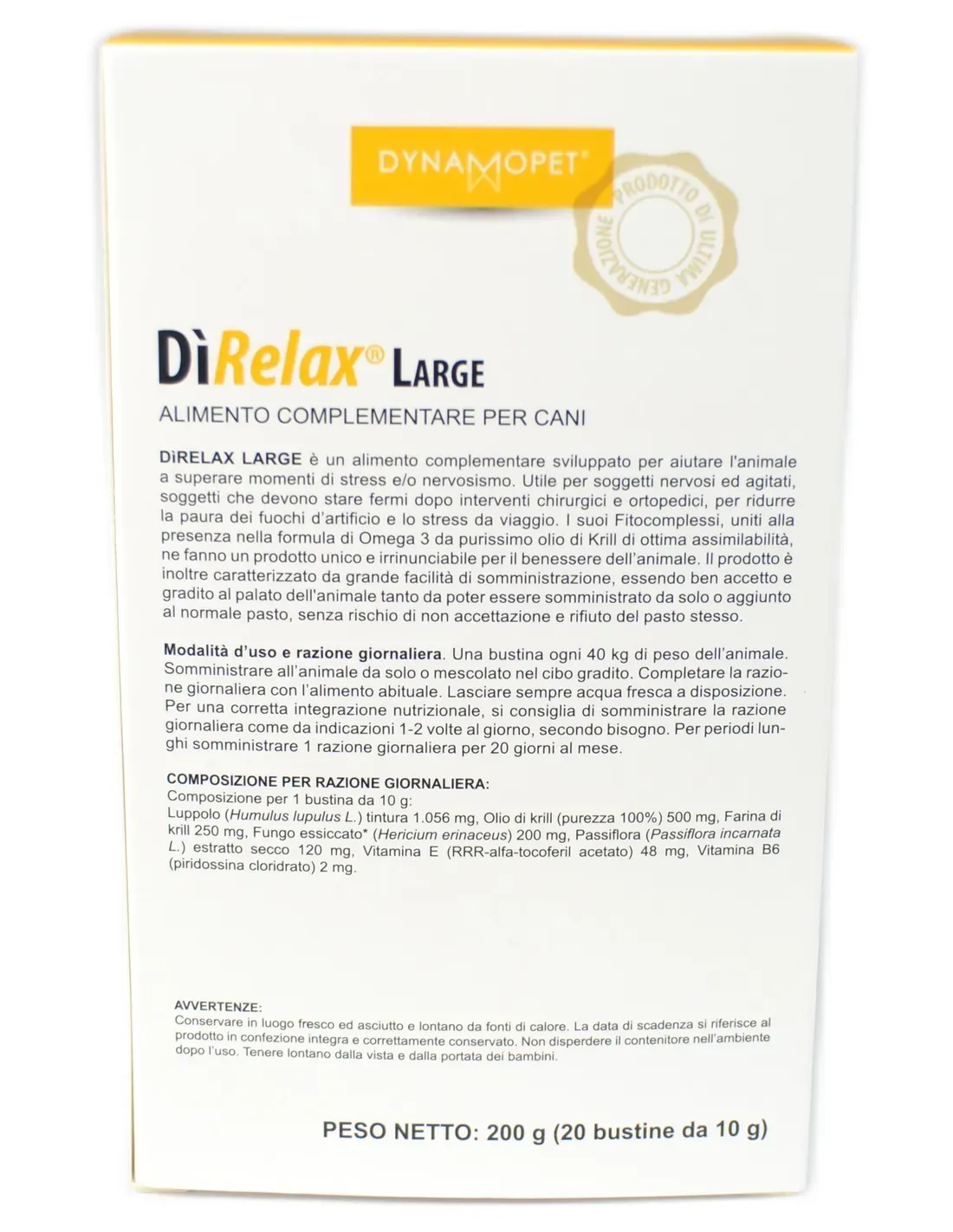 Dìrelax aide le chien à surmonter les moments de stress et de nervosité, utile pendant le voyage et dans toutes les situations stressantes et rendant le voyage paisible et paisible.
