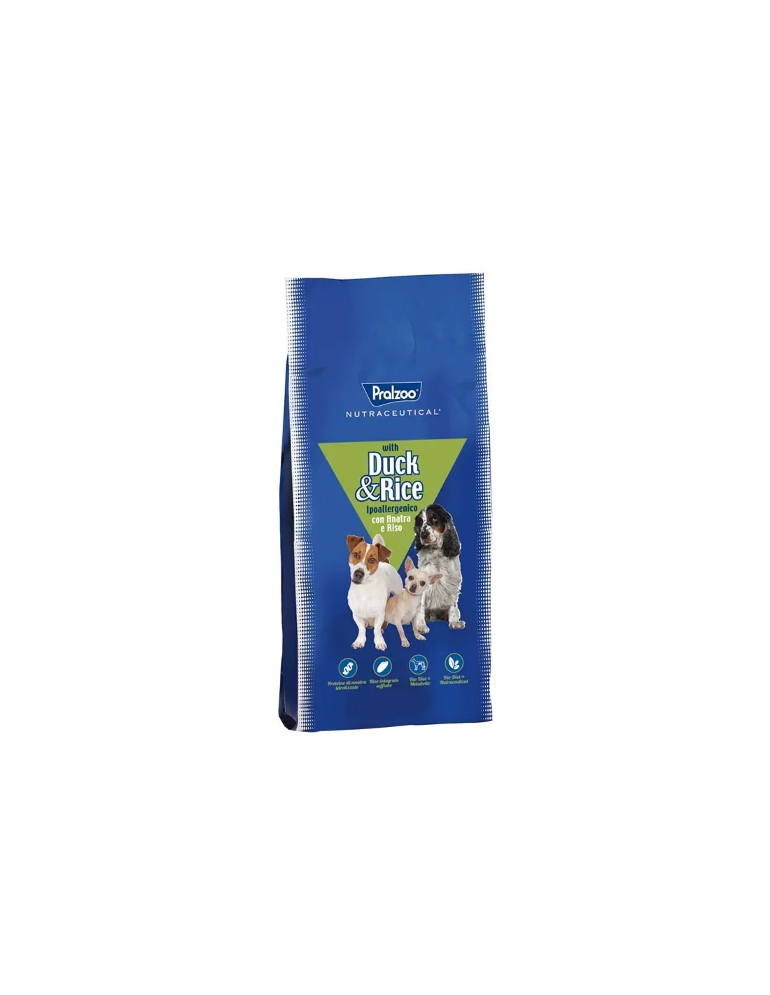La formule hypoallergénique de Pralzoo Adulte Canard et Riz HYPOALLERGENICO est sans conservateurs ni colorants, ce qui la rend généralement bien tolérée par l'organisme du chien. Ce produit est également connu sous le nom de Croquettes de canard et de riz Pralzoo et de Canard et riz hypoallergéniques Pralzoo.