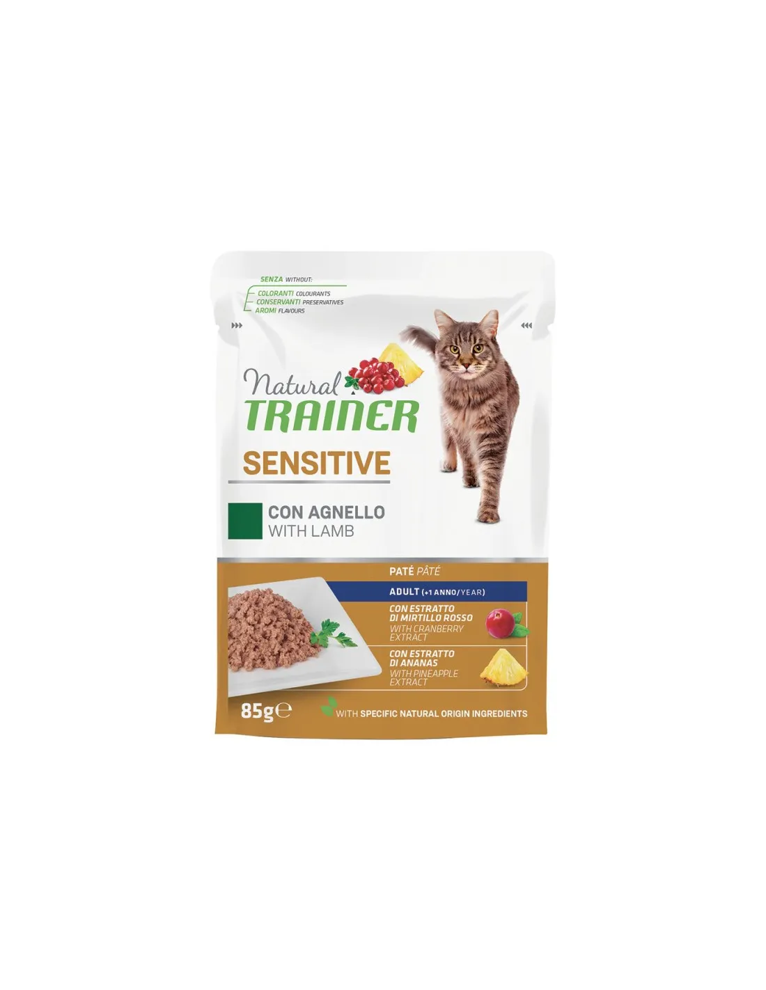 Les friandises pour chats Natural Trainer Sensitive Lamb sont une nourriture humide de haute qualité spécialement formulée pour les chats adultes. Chaque sachet de 85 grammes contient des bouchées en sauce à l'agneau, conçues pour répondre aux besoins nutritionnels des chats sensibles aux aliments.