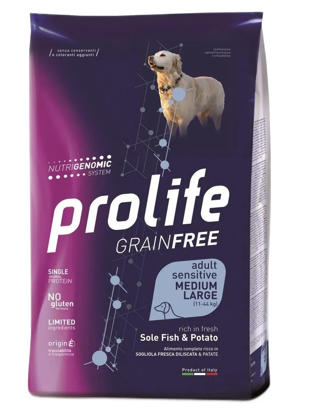 Aliment complet riche en sole fraîche désossée et pommes de terre pour chiens adultes sensibles de moyenne et grande taille.