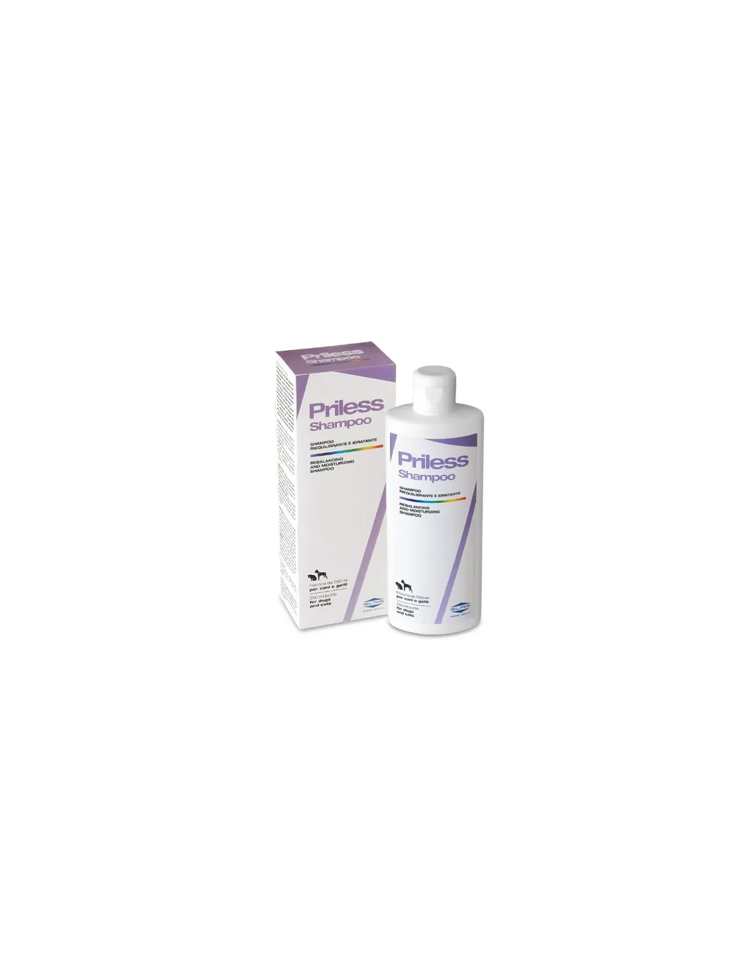 Priless Shampoo 250 Ml est spécialement formulé pour les chiens et les chats, l'espèce la plus courante parmi les animaux de compagnie qui nécessitent des soins quotidiens pour leur pelage. Sa composition et sa formulation permettent une utilisation sûre et efficace sur les deux, en respectant les caractéristiques de la peau et du pelage typiques de ces espèces. Il convient aux sujets de tous âges, des chiots et chatons aux spécimens adultes et âgés, à condition qu'ils ne présentent pas de conditions cliniques contre-indiquant l'utilisation du produit sans consultation vétérinaire. Grâce à sa polyvalence, le shampooing Priless représente une solution pratique et fiable pour le nettoyage et les soins hygiéniques dans différentes situations, facilitant le maintien d'un pelage propre, sain et brillant. Le produit est particulièrement recommandé aux propriétaires d'animaux à fourrure de différentes longueurs et types, y compris les animaux à poils longs, courts, bouclés ou lisses, assurant confort et bien-être pour tous les types de fourrure.