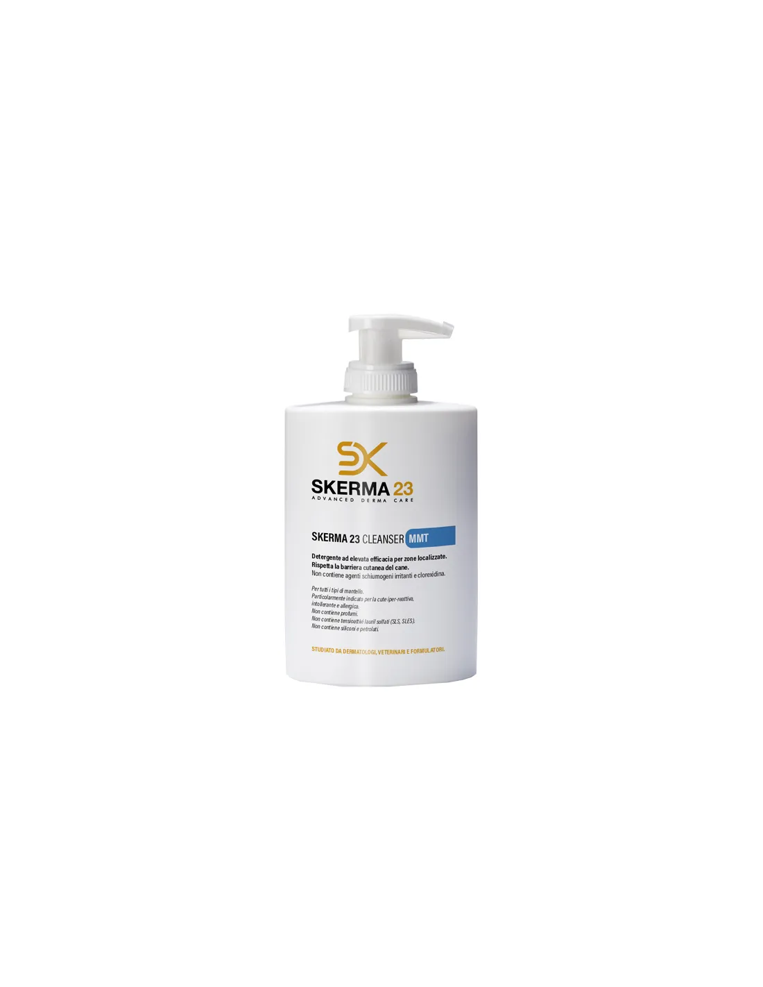 Mundavet Skerma 23 Cleanser MMT 250 ml est un nettoyant innovant pour animaux de compagnie qui utilise la technologie macromicellaire pour assurer un nettoyage en profondeur sans compromettre la santé de la barrière cutanée. Ce produit a été formulé pour être extrêmement délicat, il ne contient pas de parfums, colorants ou conservateurs susceptibles de provoquer des réactions indésirables, ce qui le rend idéal pour une utilisation quotidienne sur tous les types de pelage et particulièrement adapté en cas de pathologies dermatologiques telles que la dermatite allergique.