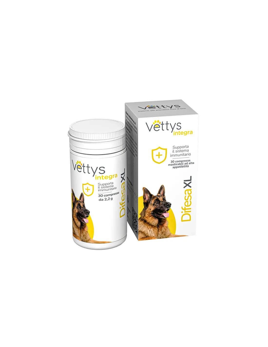 Vettys Integra Difesa XL 30 Comprimés est un complément multivitaminé pour chien, conçu pour renforcer le système immunitaire de votre compagnon à quatre pattes. Ce produit est un aliment complémentaire qui propose un mélange d'ingrédients naturels soigneusement sélectionnés pour renforcer les défenses immunitaires du chien.