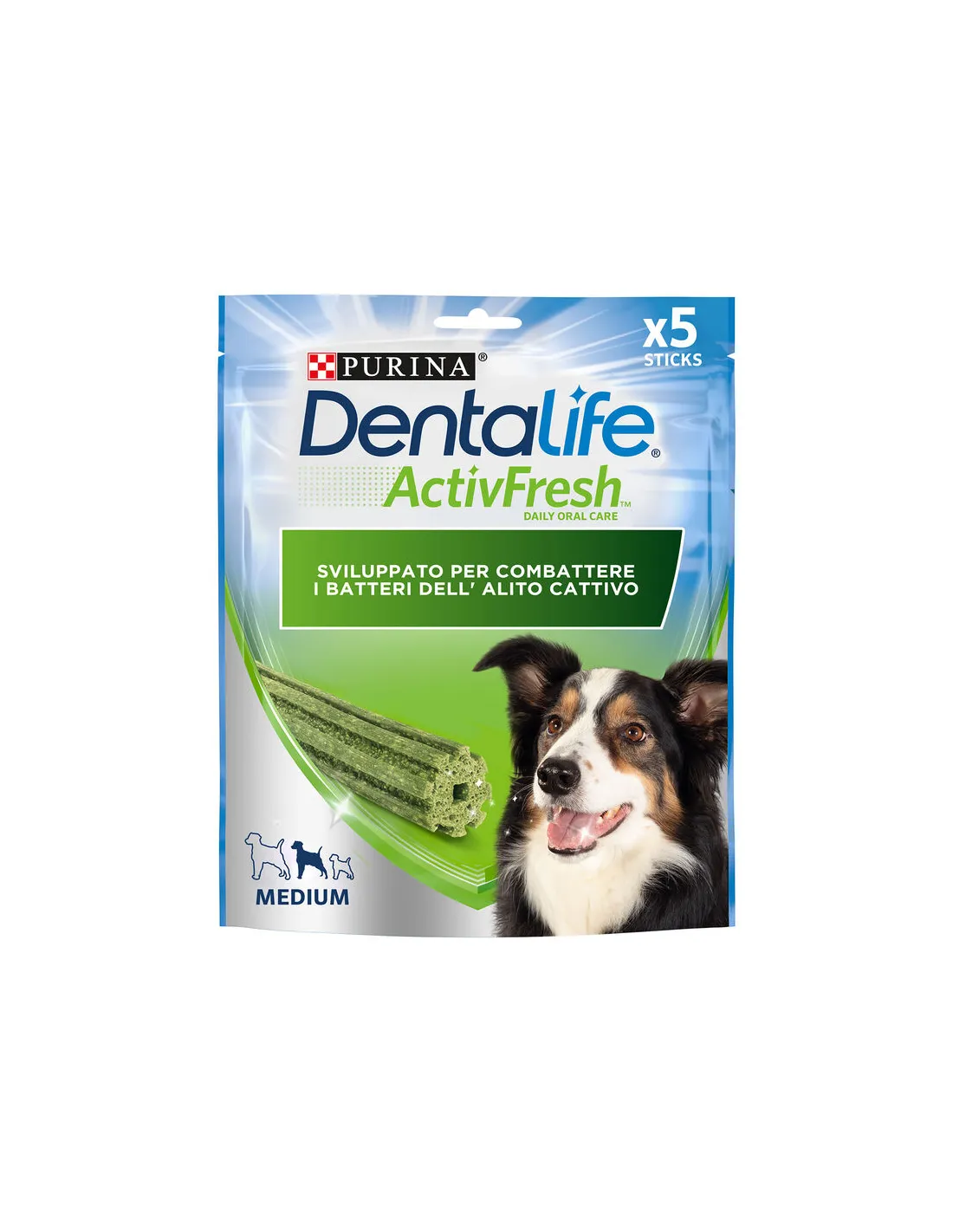 Le snack Dentalife Active Fresh est indiqué pour les soins d'hygiène bucco-dentaire quotidiens des chiens de taille moyenne. L'utilisation régulière de ces sticks à croquer permet de réduire considérablement l'accumulation de tartre et de plaque dentaire, deux des principales causes de maladies parodontales chez le chien. De plus, l'action mécanique de la mastication stimule la production de salive, ce qui contribue à nettoyer la bouche et à réduire la présence de bactéries nocives.
