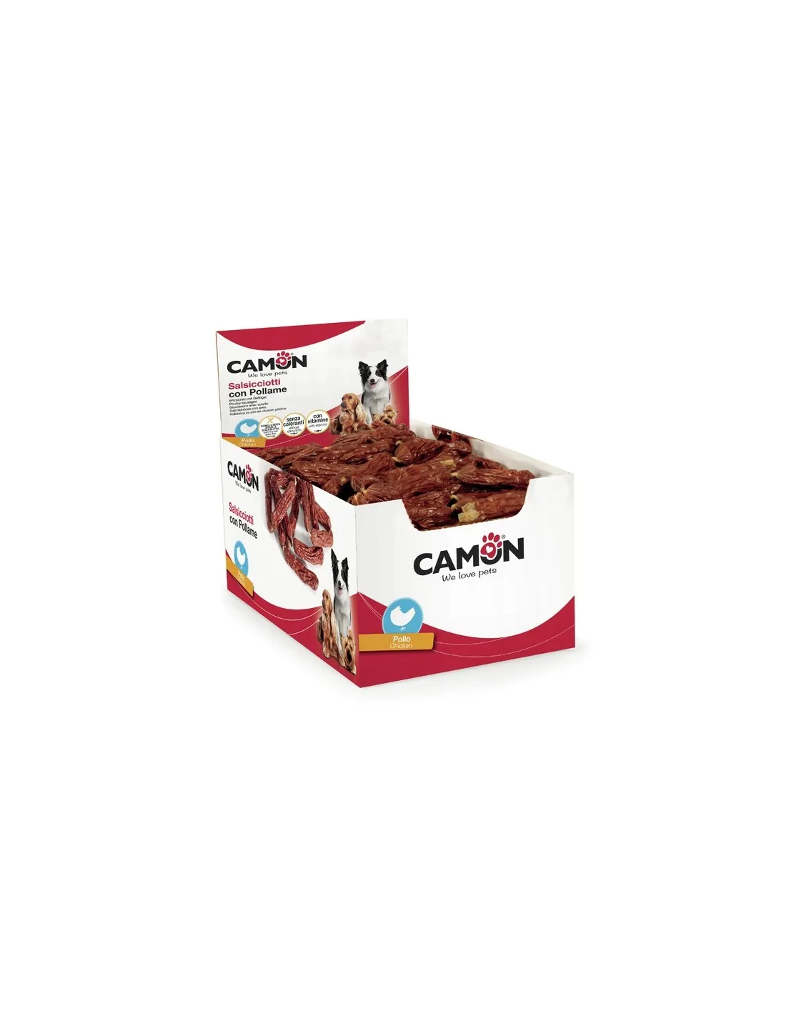 CAMON Salsicciotti au Poulet représente une collation idéale pour récompenser votre ami à quatre pattes. Ces saucisses ont été créées pour être utilisées en complément de l'alimentation quotidienne de votre chien, offrant une alternative savoureuse et saine. Leur formule a été soigneusement conçue pour respecter la santé de votre animal : elles sont totalement sans gluten, ne contiennent aucun colorant artificiel et sont enrichies en vitamines essentielles au bien-être du chien. La taille de chaque saucisse varie entre 6 et 8,5 cm, ce qui les rend adaptées aux chiens de différentes tailles et âges. Le type de boîte est pratique et facile à ranger, garantissant que les collations restent fraîches et appétissantes pour votre animal.