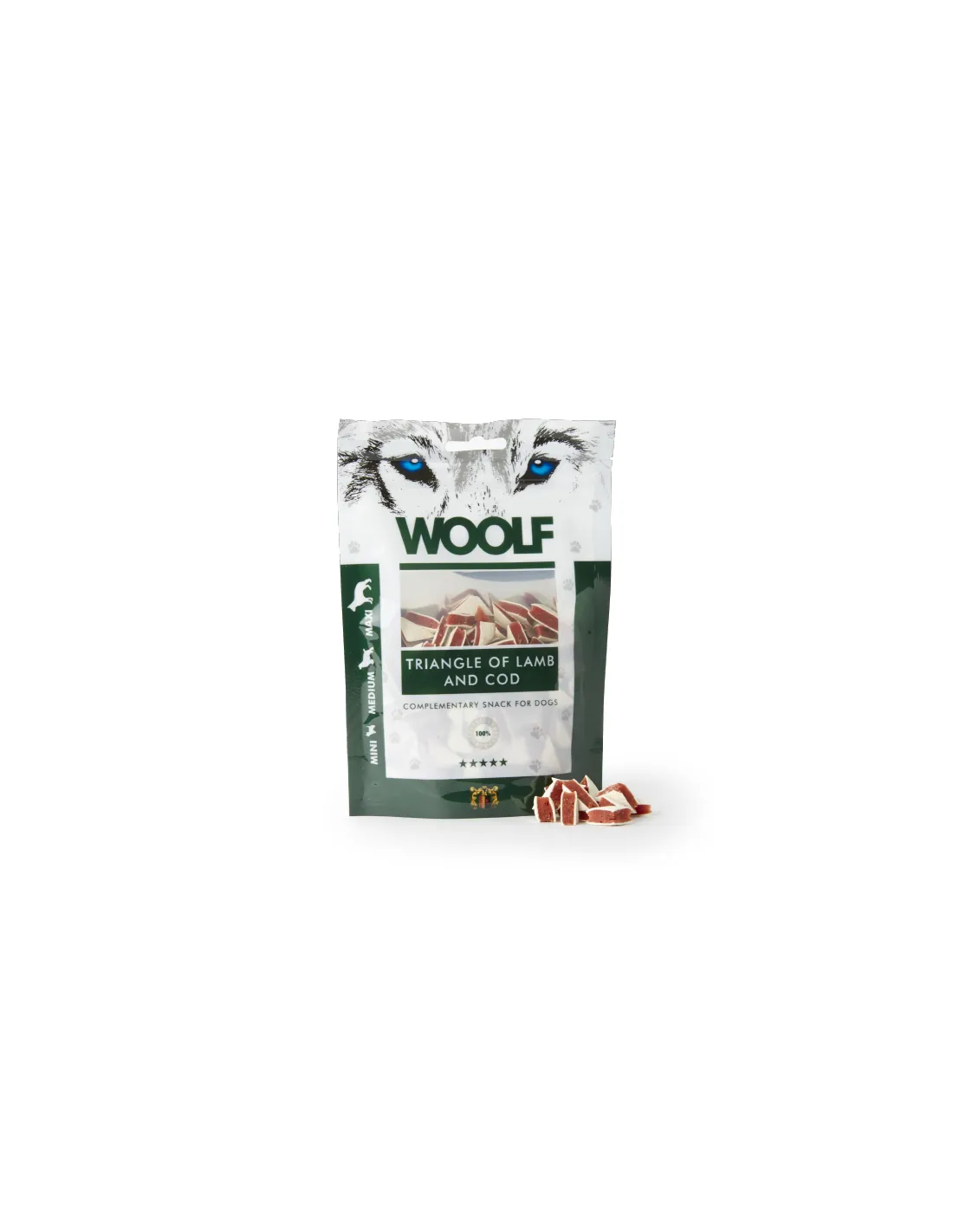 Woolf Snack Lamb and Cod Triangles est une collation pour chiens qui combine savamment deux protéines de haute qualité : l'agneau et la morue. Ces collations en forme de triangle sont non seulement savoureuses mais aussi nutritives, idéales pour récompenser votre chien à tout moment de la journée.