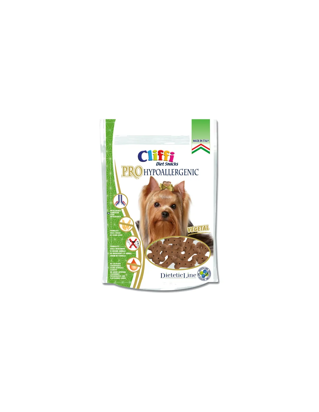 CLIFFI « PRO-HYPOALLERGÉNIQUE VEGETAL » réduit le risque d'intolérances alimentaires en étant formulé avec une source hautement tolérable de protéines végétales, dérivées du soja. Il ne contient pas de céréales ajoutées ni d'ingrédients d'origine animale, qui peuvent provoquer des intolérances ; Aucun colorant, conservateur ou arôme artificiel n'est ajouté dans sa préparation. C'est la récompense idéale entre les repas.