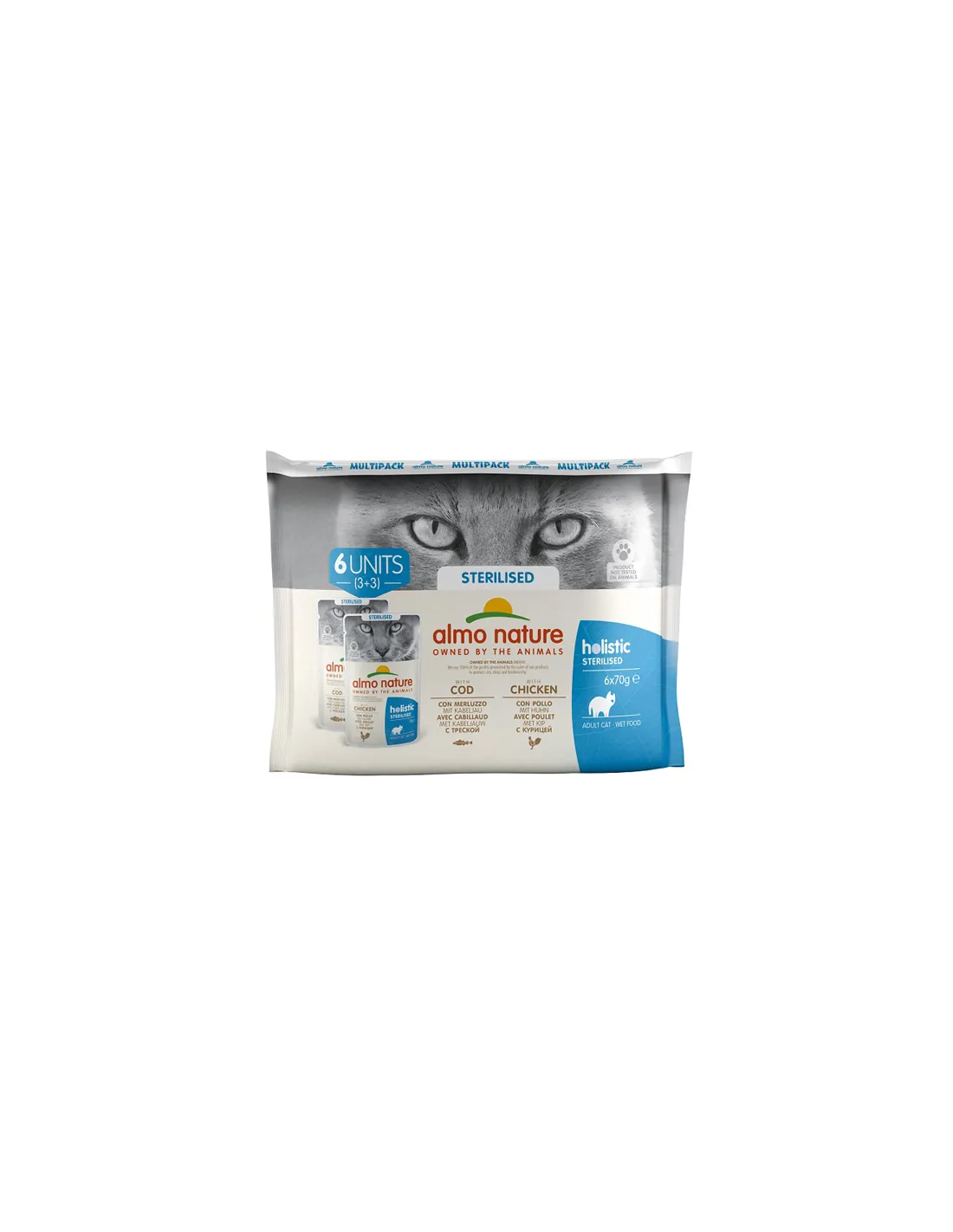Holistic sterilized est la formule la mieux adaptée aux besoins des chats stérilisés, capable de leur apporter tous les nutriments dont ils ont besoin, jour après jour. Le chat stérilisé a généralement tendance à être en surpoids en raison d'une activité motrice réduite : on estime que les besoins caloriques diminuent jusqu'à 30 % après la stérilisation. Enrichies en vitamines et minéraux, préparées sans colorants ni conservateurs chimiques, les recettes humides stérilisées holistiques procurent une hydratation naturelle et sont idéales pour le contrôle du poids, grâce à une quantité limitée de graisses. Aliment humide complet stérilisé holistique pour chat.