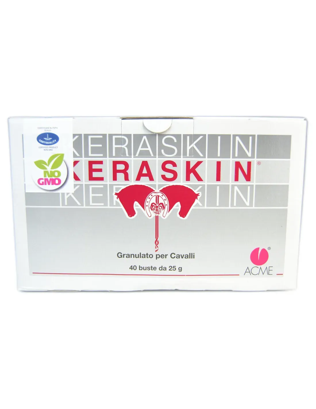 Granulé. Chevaux et poulains adultes : 1 à 2 sachets par jour, 1 à 2 mesurettes par jour pendant au moins 100 jours consécutifs. Nous recommandons l'administration quotidienne de Keraskin pendant 100 jours consécutifs. Administrer directement dans la bouche du cheval ou du poulain.