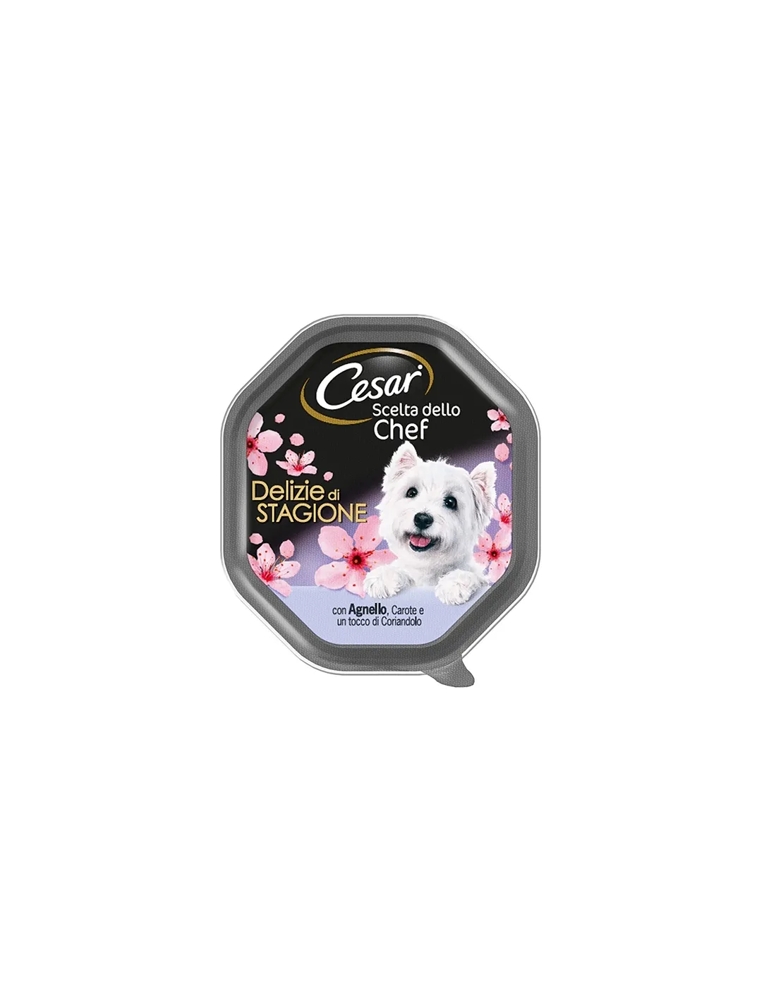 Cesar Scelta dello Chef Con Agnello, Carote e Coriandolo è un cibo umido per cani di alta qualità. Questo prodotto da 150 gr è formulato per fornire un pasto completo e bilanciato per il vostro amico a quattro zampe.
