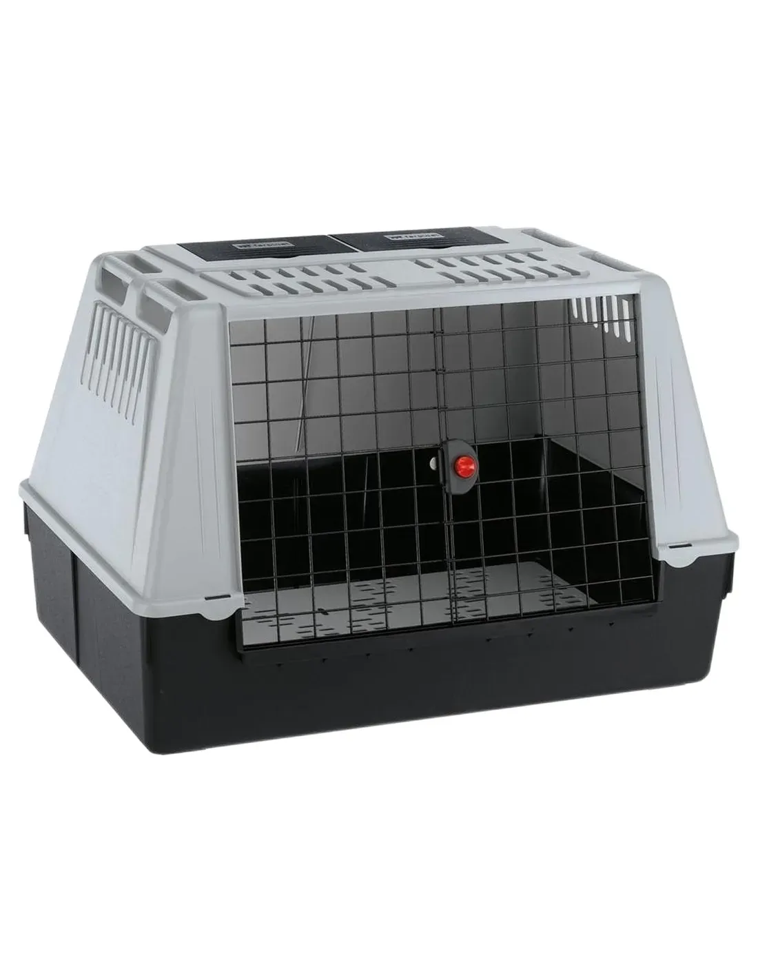 Wszystkie modele garażowe mają solidny zamek zabezpieczający i łatwy do otwarcia dwukierunkowe drzwi przesuwne. Duże kratki wentylacyjne zapewniają dobrą wentylację klatki, a higieniczna mata ociekowa umieszczona na dnie zapewnia zawsze suche środowisko. Praktyczne uchwyty boczne pozwalają na łatwy transport i ustawienie w samochodzie.