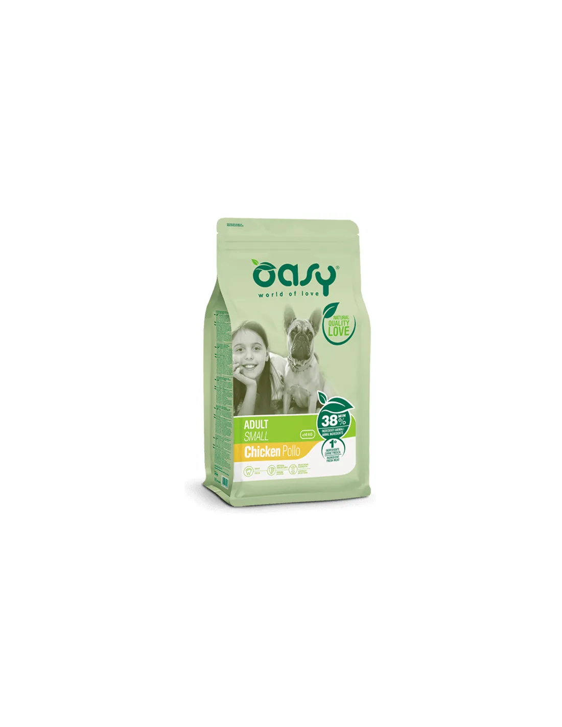 Oasy Adult Small for Dogs to kompletna sucha karma opracowana specjalnie dla małych dorosłych psów w wieku jednego roku lub starszych. Produkt ten został zaprojektowany, aby wspierać idealne utrzymanie wagi i promować optymalne trawienie. Granulki mają konsystencję ułatwiającą czyszczenie zębów i dziąseł, a ich zawartość odżywcza została wzbogacona o składniki korzystnie wpływające na ogólny stan zdrowia psa.