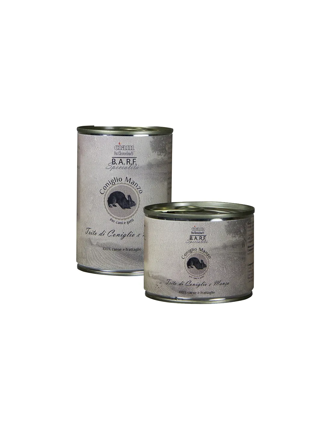 Produkty uboczne pochodzenia zwierzęcego: wołowina (serca, wątroba, płuca, flaki) (56,5%), królik (serca, wątroba) (43,5%)