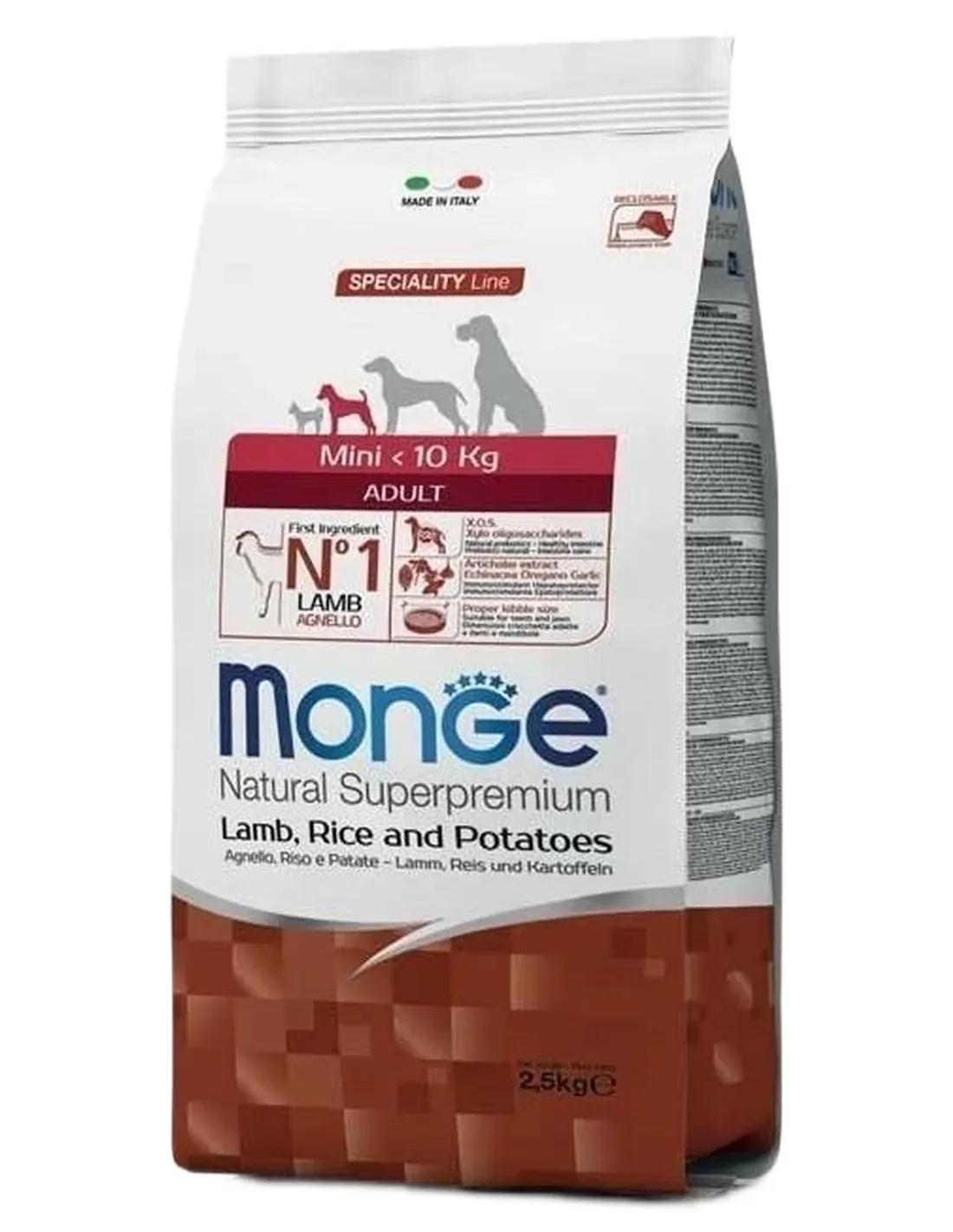 Krokiety Monge Natural Superpremium Specialty Line Mini Adult z jagnięciną, ryżem i ziemniakami to kompletna karma dla małych psów. Gwarantują dobre samopoczucie psa dzięki obecności bardzo wysokiej jakości składników odżywczych, będących wynikiem badań Made in Italy.