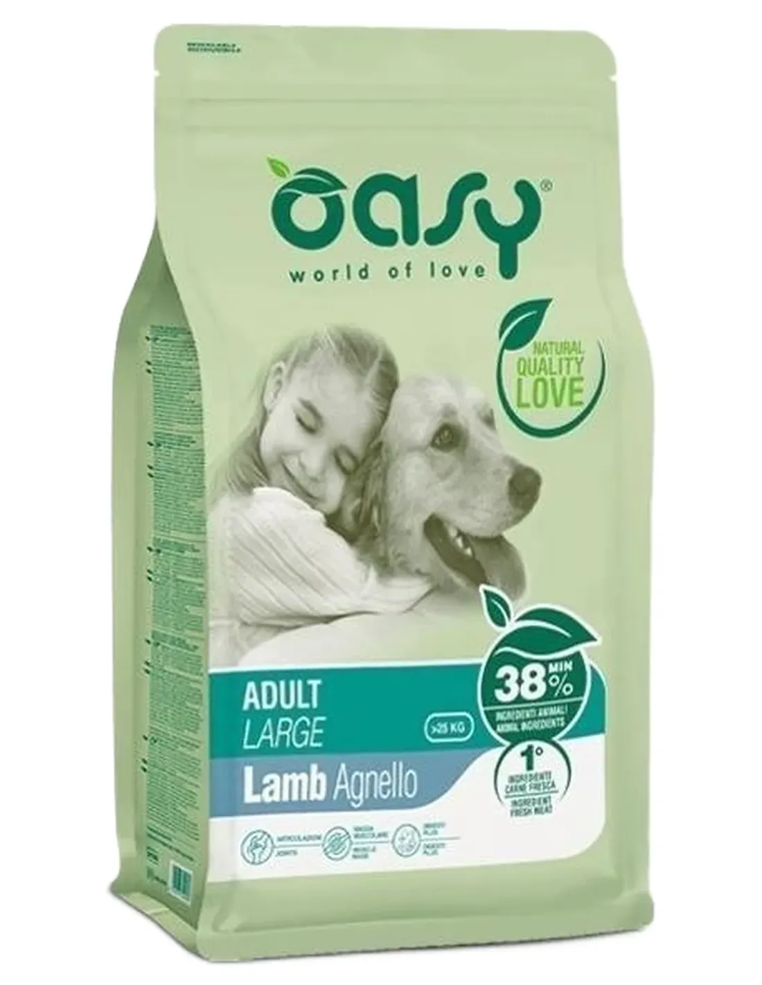 Wysokiej jakości białka zawarte w Oasy mają wysoką wartość biologiczną i są niezbędne do wspierania silnej, beztłuszczowej masy mięśniowej u psów dużych ras.