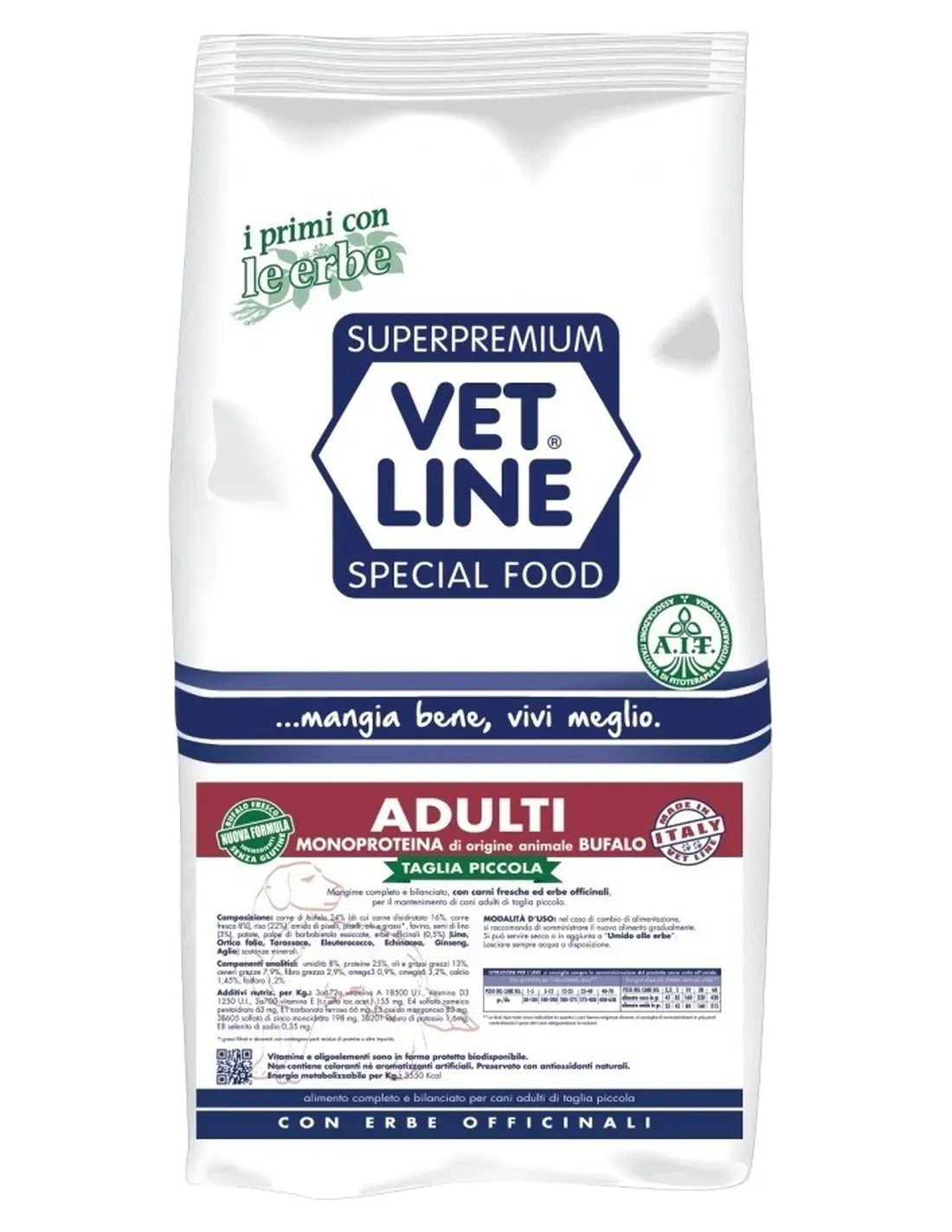 Formuła Vet Line Adult Dog Small Breed Buffalo została specjalnie opracowana do pielęgnacji małych dorosłych psów. Ta kompletna karma dla szczeniąt zawiera białko o smaku bawolym, znane ze swoich właściwości hipoalergicznych.