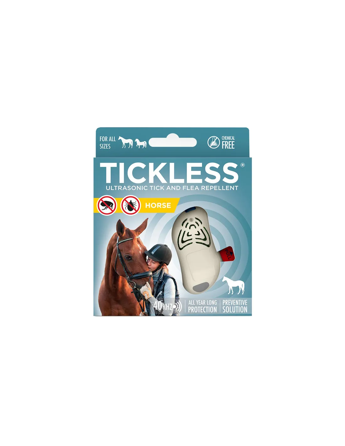 Tickless Horse to innowacyjny ultradźwiękowy środek odstraszający przeznaczony do ochrony koni przed kleszczami i pchłami. To beżowe urządzenie, dostępne również w kolorze brązowym, emituje ultradźwięki, które odstraszają te szkodniki, utrzymując je na dystans bez użycia środków chemicznych. Technologia ultradźwiękowa jest bezpieczna dla zwierzęcia i środowiska, dzięki czemu Tickless Horse jest idealnym rozwiązaniem dla właścicieli koni poszukujących ekologicznej alternatywy dla tradycyjnych zabiegów. Ponadto Tickless Horse jest łatwy w użyciu: wystarczy przymocować go do uzdy lub siodła konia, aby zapewnić ciągłą ochronę przed kleszczami i pchłami.