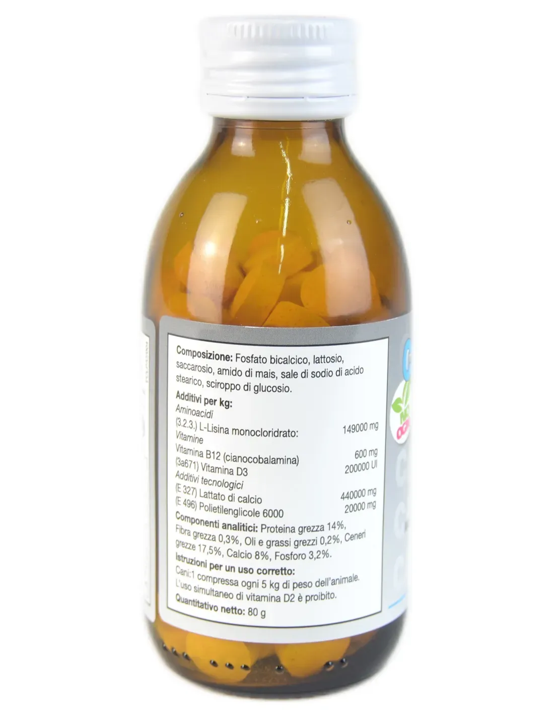 witamina D3, witamina B12 i lizyna są niezbędne do wiązania wapnia w tkance kostnej, wspierają rozwój układu mięśniowo-szkieletowego szczeniąt, stymulują apetyt, wzrost i hematopoezę (produkcję komórek krwi)