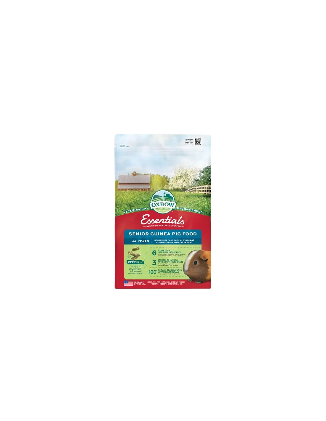 Karma Oxbow Animal Health Essentials Senior Guinea Food jest przeznaczona dla starszych świnek morskich, które wymagają specjalnej diety w celu utrzymania optymalnego zdrowia. Karma została wzbogacona o wysokostrawne włókna, niezbędne witaminy i minerały, które przyczyniają się do ogólnego dobrostanu zwierzęcia.
