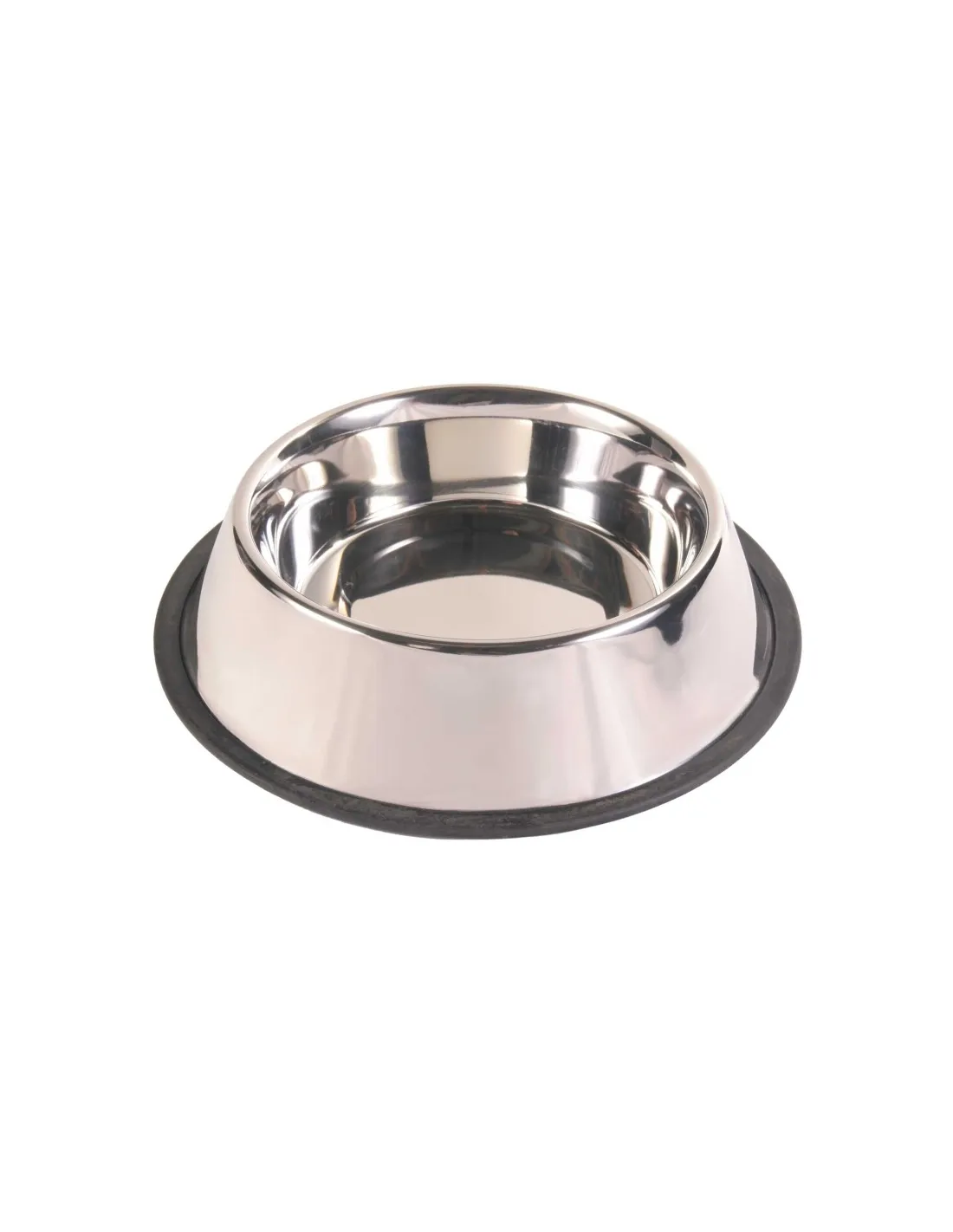 Miska „Low Steel Bowl” wyposażona jest w antypoślizgowe dno, które zapobiega przesuwaniu się miski w trakcie jedzenia przez zwierzę. Pomaga to zapobiegać niechlujnym posiłkom i pozwala utrzymać miejsce do spożywania posiłków w czystości i porządku.