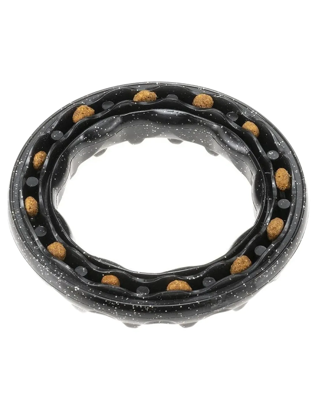Zabawka stomatologiczna Ferplast Smile ze średnim czarnym pierścieniem wykonana jest z wytrzymałej gumy termoplastycznej, zaprojektowanej tak, aby pomagała w czyszczeniu zębów psa podczas zabawy. Kształt pierścienia stymuluje żucie i pomaga usuwać płytkę nazębną i kamień nazębny.