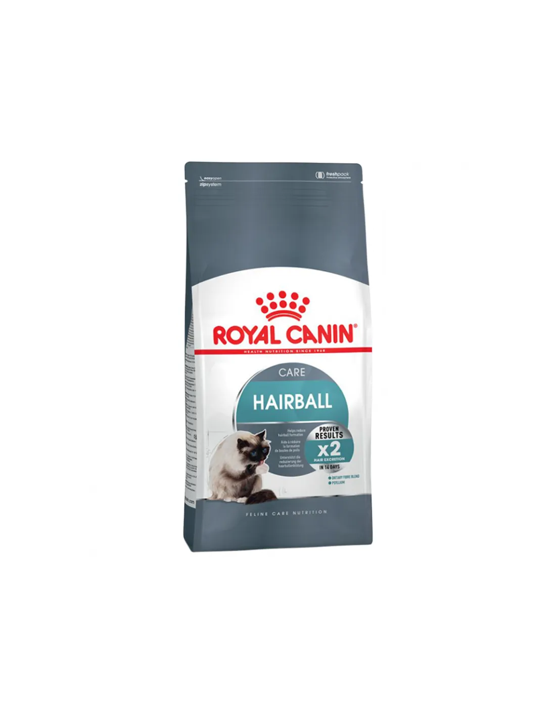 Royal Canin Feline Care Nutrition Adult Hairball to kompletna i zbilansowana sucha karma, opracowana specjalnie dla dorosłych kotów cierpiących na problemy z włosami. Produkt ten wchodzi w skład linii Feline Care Nutrition, która ma na celu odpowiedzieć na specyficzne potrzeby najbardziej wrażliwych kotów, oferując rozwiązania mające na celu poprawę ich codziennego samopoczucia.