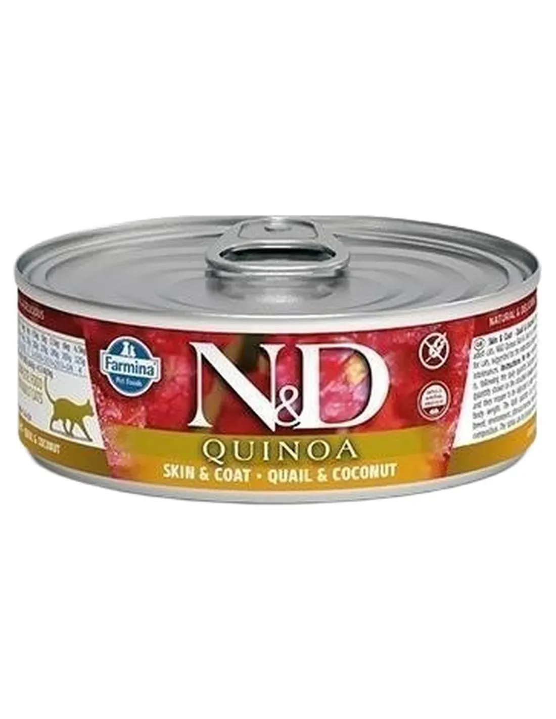 N&D Quinoa Skin & Coat to kompletna dietetyczna karma dla kotów, zalecana w celu ograniczenia nietolerancji składników i składników odżywczych.