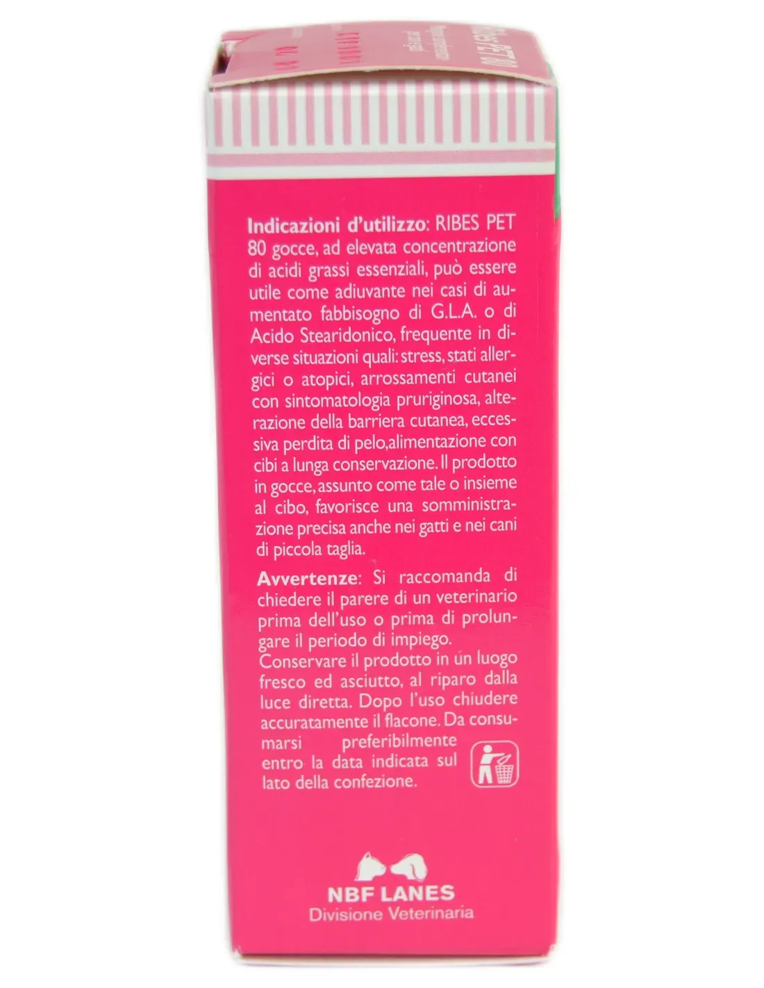 Wspomaganie funkcji skóry przy dermatozie i nadmiernym wypadaniu włosów Porzeczkowy zwierzak 80 kropli o wysokim stężeniu niezbędnych nienasyconych kwasów tłuszczowych może być przydatny jako środek wspomagający w przypadku zwiększonego zapotrzebowania na g.l.a. lub kwasu stearydonowego, częste w różnych sytuacjach, takich jak: stres, stany alergiczne lub atopowe, zaczerwienienie skóry z objawami swędzącymi, zaburzenia bariery skórnej, nadmierne wypadanie włosów, karmienie pokarmami o przedłużonej trwałości. Produkt w kroplach, przyjmowany samodzielnie lub razem z karmą, ułatwia precyzyjne podanie nawet u kotów i małych psów.