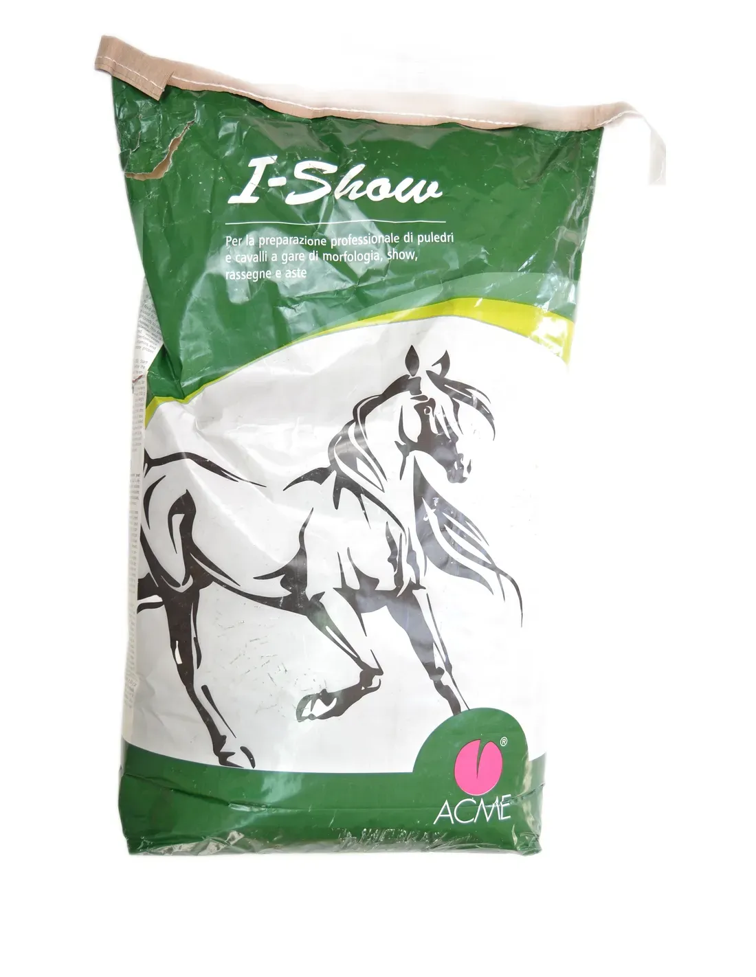 Rozpocznij administrację I-SHOW na 60 dni przed zawodami i kontynuuj przez cały okres przygotowawczy. Należy przestrzegać i nie przekraczać ilości zalecanych w tabelach. Zawsze łącz paszę doskonałej jakości ze zbożami (owies, jęczmień, kukurydza). Po pokazie stopniowo zmniejszaj dawki. Jeśli w ciągu roku planowane są inne pokazy, kontynuuj dawkę podtrzymującą 500 g do 60 dni przed nowymi zawodami, a następnie wróć do dawek przygotowawczych.