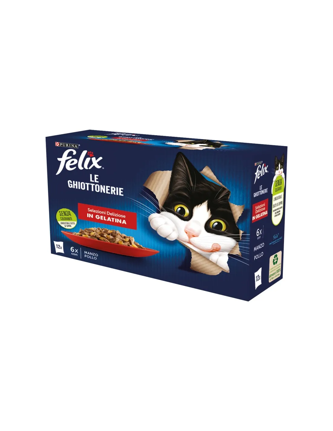 Purina Felix Le Ghiottonerie Delicious Selections In Gelatine 12x85g to mokra karma dla kotów, bogata w składniki odżywcze i witaminy niezbędne dla dobrego samopoczucia Twojego kociego przyjaciela. Ten produkt oferuje różnorodne pyszne smaki, wszystkie zawinięte w smaczną galaretkę, którą uwielbiają koty.
