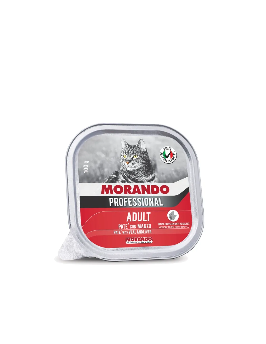 Morando Professional Tray Paté with Beef Gr.100 to wysokiej jakości mokra karma dla kotów, idealna do zaspokojenia codziennych potrzeb żywieniowych kotów w każdym wieku. Produkt ten wyróżnia się wykorzystaniem wyselekcjonowanych surowców oraz prezentacją w eleganckim opakowaniu, które gwarantuje jego świeżość i smakowitość.