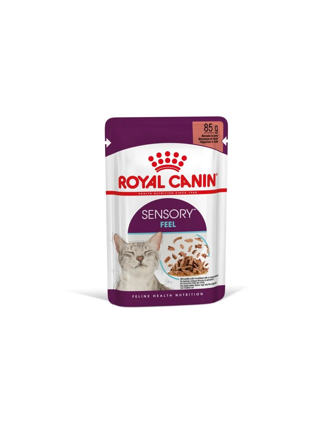 Royal Canin Sensory Feel Gravy 85 gr to mokra karma w sosie dla dorosłych kotów, która dzięki swojej specyficznej konsystencji zapewnia wyjątkową stymulację sensoryczną, poprawiającą doznania smakowe kota.
