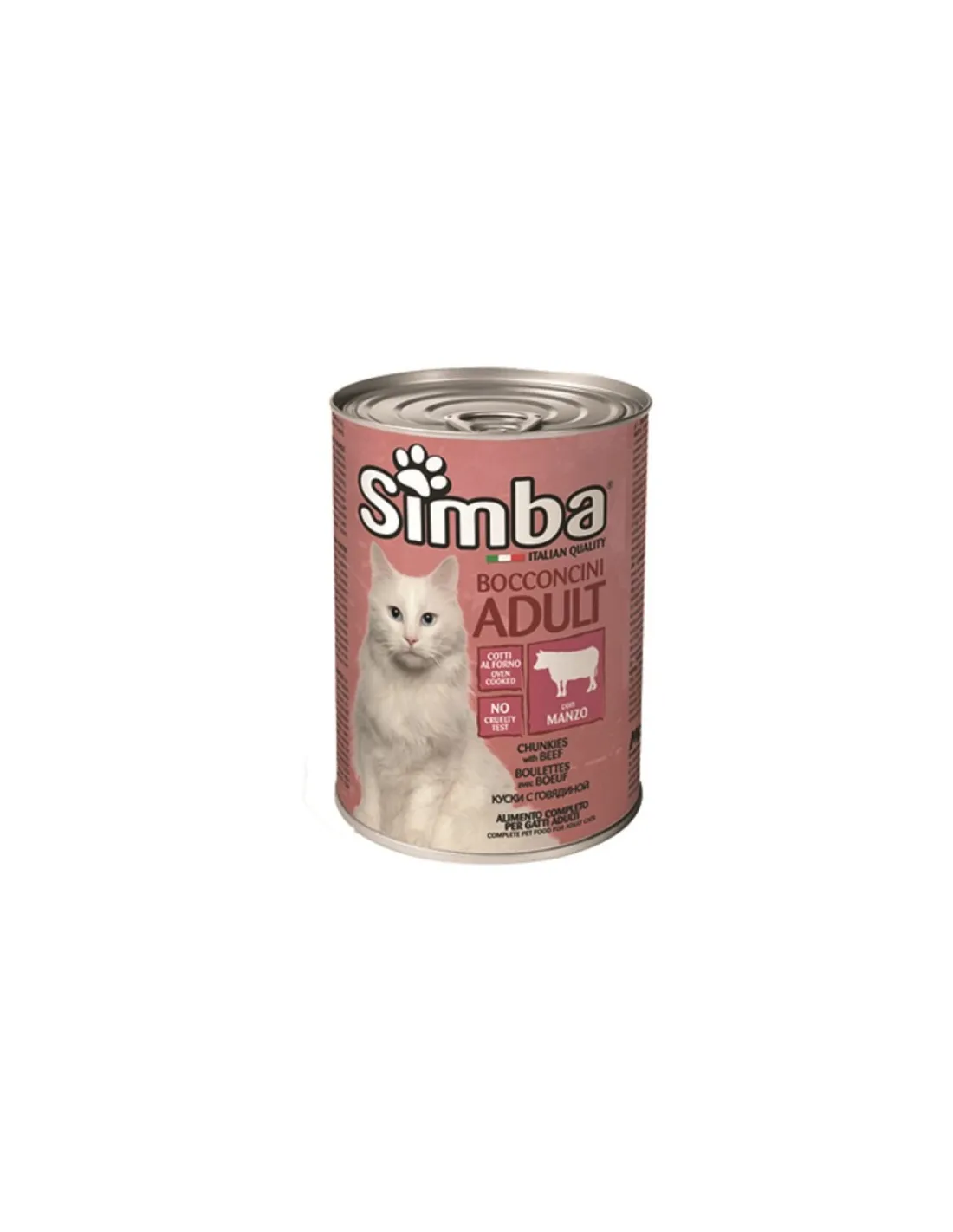 Simba Bocconi Adult With Beef 415g to mokra karma w puszkach dla psów, zapewniająca kompletne i zbilansowane odżywianie. Ten produkt jest idealny dla dorosłych psów wszystkich ras i rozmiarów, zapewniając im dietę bogatą w białko i inne niezbędne składniki odżywcze w celu utrzymania optymalnego zdrowia.