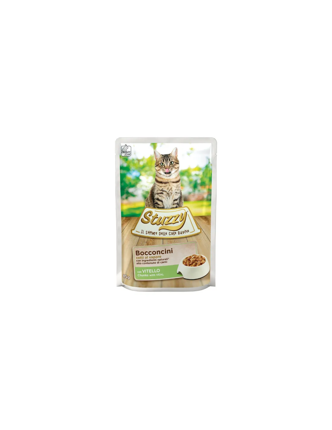 Dostępny w praktycznych saszetkach 85 g, Stuzzy Monoprotein Vitello nie zawiera zbóż i glutenu, nie zawiera dodatku barwników ani konserwantów i został opracowany we współpracy z Wydziałem Weterynaryjnych Nauk Medycznych Uniwersytetu w Bolonii, zapewniając bezpieczną i wysokiej jakości dietę.