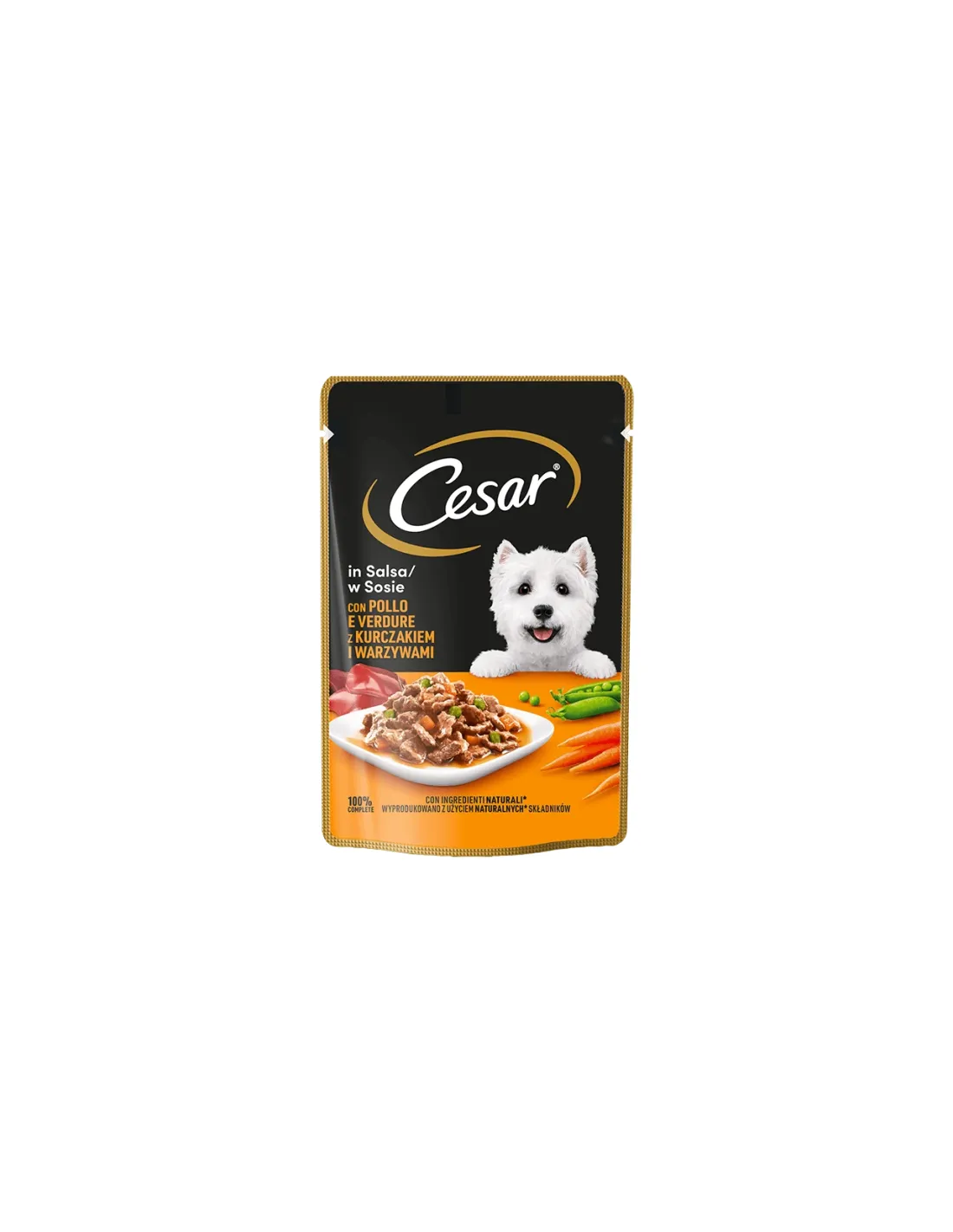 Cesar® Delights of the Day z delikatnym kurczakiem i mieszanką warzyw w sosie to produkt bezpieczny dla Twojego psa, jeśli stosowany jest zgodnie z instrukcją na opakowaniu. Nie przekraczać zalecanej porcji dziennej.