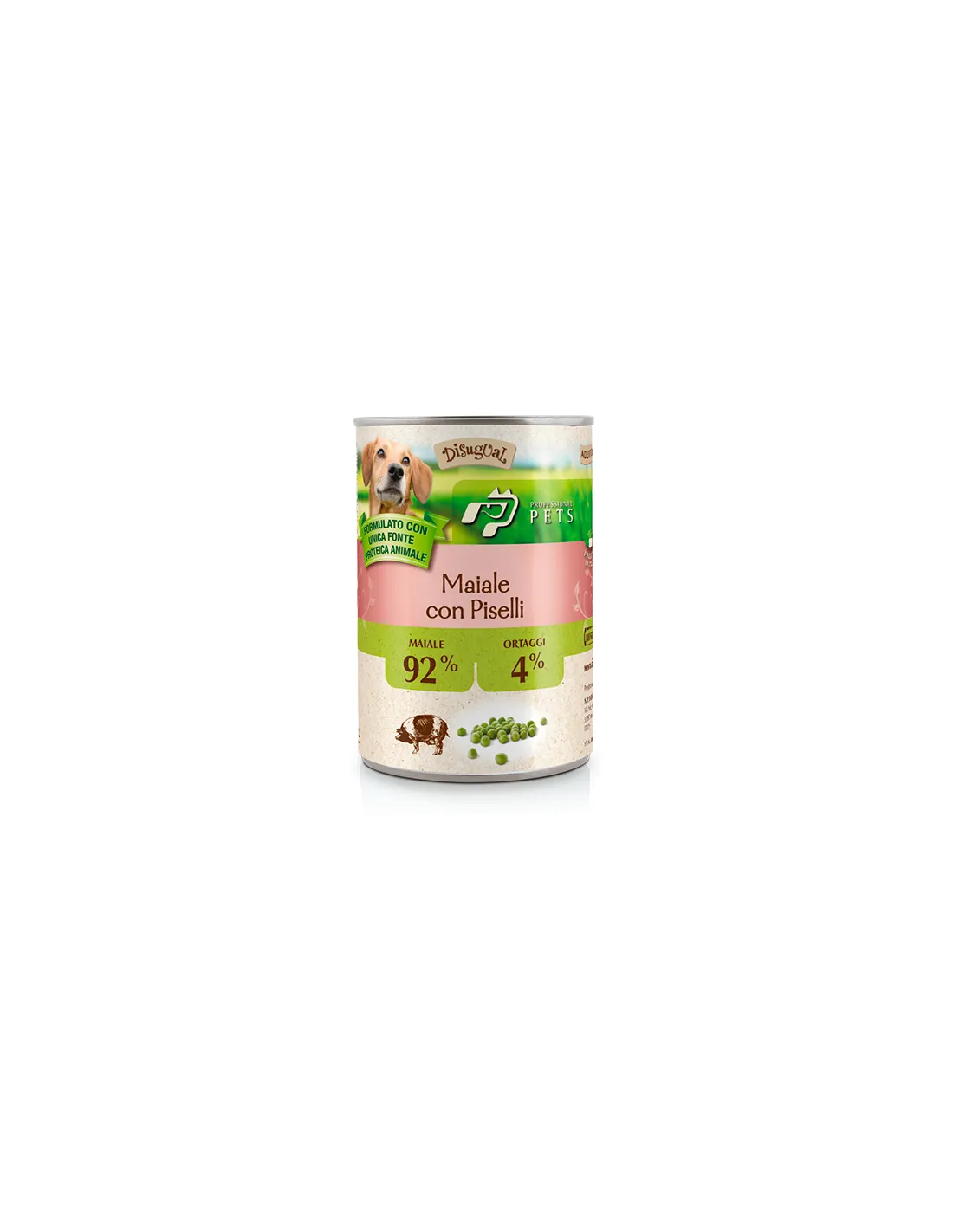 „Professional Pet Dog Monoprotein Pork and Peas” to kompletna mokra karma dla dorosłych psów. Produkt ten składa się z jednego źródła białka zwierzęcego, wieprzowiny, i jest wzbogacony groszkiem. Każda 400 gramowa puszka zawiera 92% mięsa i 4% warzyw, pozostałe 4% to galaretki roślinne, witaminy i sole mineralne, dzięki czemu jest to naprawdę pełnowartościowy posiłek. Nie zawiera sztucznych konserwantów, barwników i aromatów. Jest bezglutenowy, bezzbożowy i wyprodukowany we Włoszech z wybranych surowców.