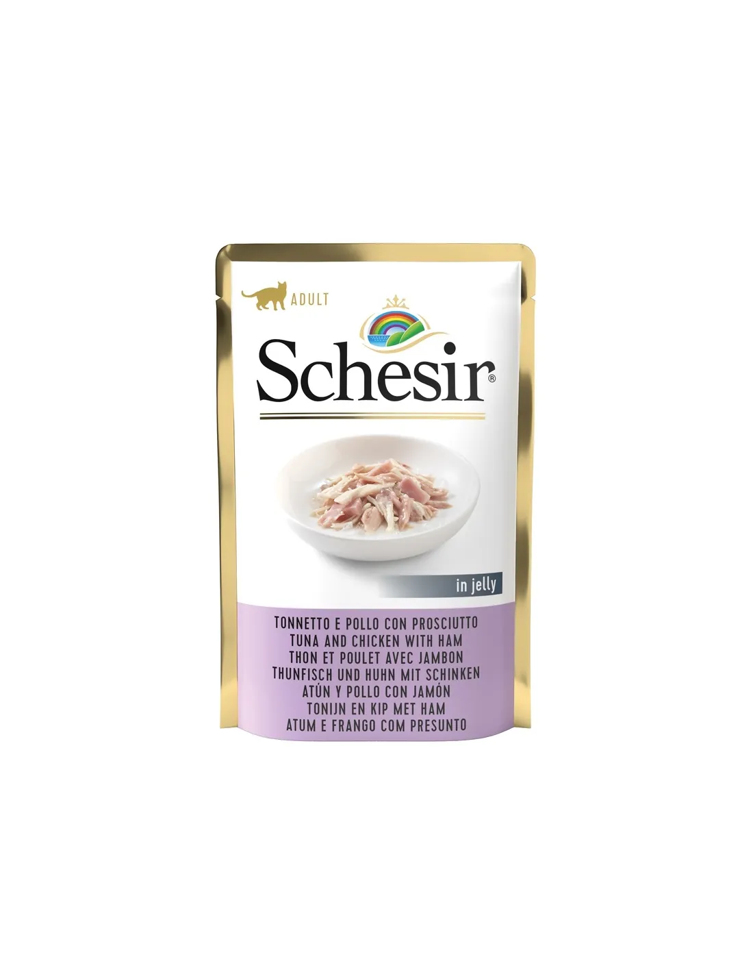 Schesir Tuńczyk z szynką w galarecie to potrawa dostarczająca wielu wartości odżywczych. Wysokiej jakości białka wspierają zdrowie i witalność Twojego kota, a kwasy tłuszczowe Omega-3 przyczyniają się do utrzymania zdrowej skóry i lśniącej sierści. Obecność żelatyny pomaga w utrzymaniu odpowiedniego nawodnienia i wspomaga pracę nerek.