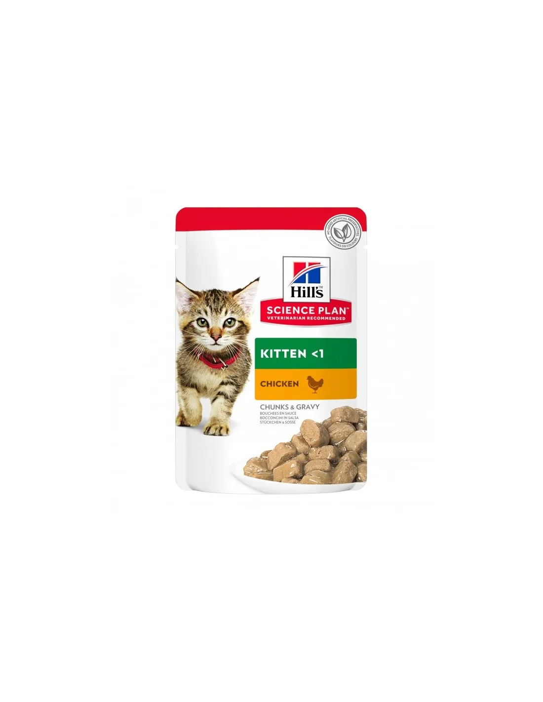 Karma Hill's Science Plan Kitten Chicken została opracowana tak, aby zaspokoić specyficzne potrzeby żywieniowe rosnących kociąt. Zawsze jednak zaleca się skonsultowanie się z lekarzem weterynarii przed rozpoczęciem nowej diety.
